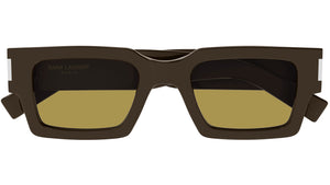 I modelli SAINT LAURENT da donna uniscono forza e femminilità, design contemporaneo e stile intramontabile. La linea donna coniuga forza e femminilità, design contemporaneo e un’allure intramontabile. Le montature spesse in acetato dalla forma tonda sfoggiano un’elegante finitura sfaccettata sul frontale e sono impreziosite dagli iconici corner angle e dalla firma SAINT LAURENT incisa sulle aste.