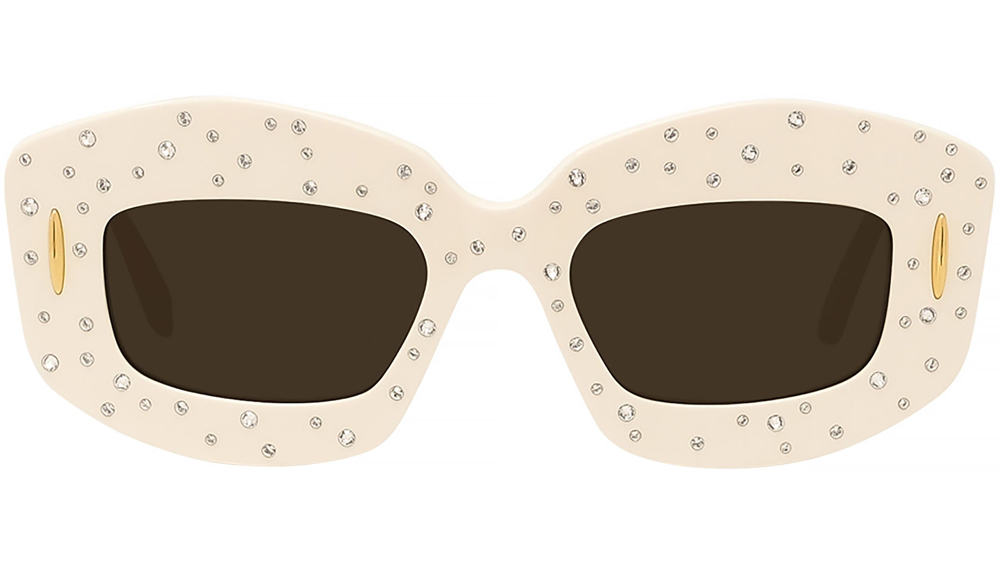 Occhiali da sole LOEWE donna linea Anagram modello LW4114IS 25E avorio solido. Squisita declinazione della forma Anagram Screen lanciata in autunno, per uno stile alla moda, con delicati strass applicati a mano. In risalto durante la sfilate di moda maschile della Maison - Rivenditore autorizzato LOEWE online. Gli occhiali vengono consegnati con custodia e accessori originali.