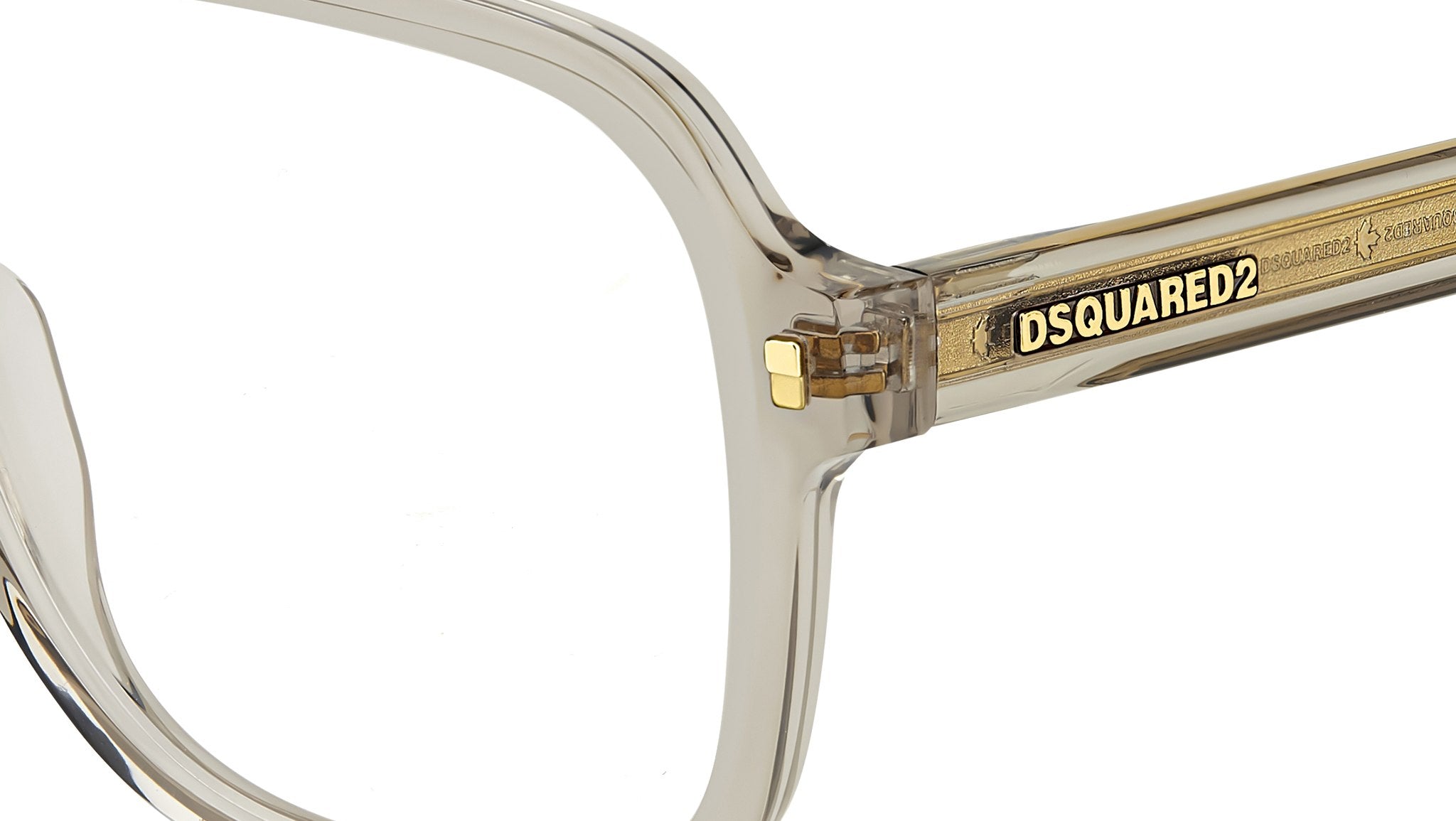 Occhiali da vista Dsquared2 D2 0145 10A uomo con montatura quadrata in acetato beige e lenti demo. Dsquared2 sa come rendere i classici occhiali da vista molto più interessanti. Questo modello è realizzato in acetato con un design geometrico, angoli smussati e volumi ridotti per una portabilità quotidiana. È proposto anche nella variante trasparente con anima a vista finemente cesellata. Non mancano le signature del brand: il logo esteso in rilievo sulle aste e la placca con la dicitura “Dsquared2 Ceresio 9 – Milano” sul lato interno. Linea: Hype. Codice modello: 108861. Codice colore: 10A. Rivenditore autorizzato Dsquared2 online. Gli occhiali vengono consegnati con custodia e accessori originali e sono coperti dalla garanzia ufficiale di 12 mesi del produttore.