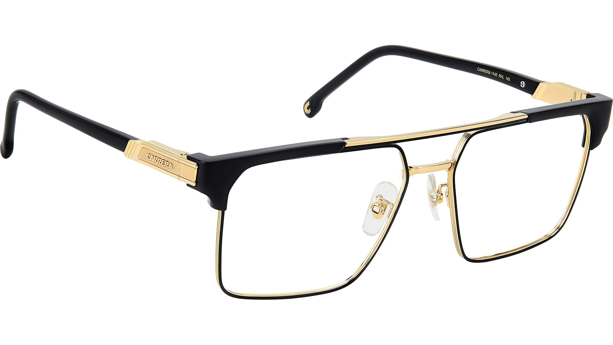 Occhiali da vista Carrera 1140 RHL uomo con montatura rettangolare in metallo oro nero e lenti demo. Con il loro carattere anticonformista, un occhiale da vista Carrera non passano inosservati. A fare la differenza è la combinazione di forme e materiali. Il frontale è in acciaio inossidabile, sovrastato dal doppio ponte con inserti in poliammide. Le aste sono determinanti, con logo scolpito e terminali in acetato, in tinta unita oppure trasparenti con anima a vista. Fit impeccabile grazie a naselli regolabili e cerniere flessibili. Linea: Flag. Codice modello: 108929. Codice colore: RHL. Rivenditore autorizzato Carrera online. Gli occhiali vengono consegnati con custodia e accessori originali e sono coperti dalla garanzia ufficiale di 12 mesi del produttore.