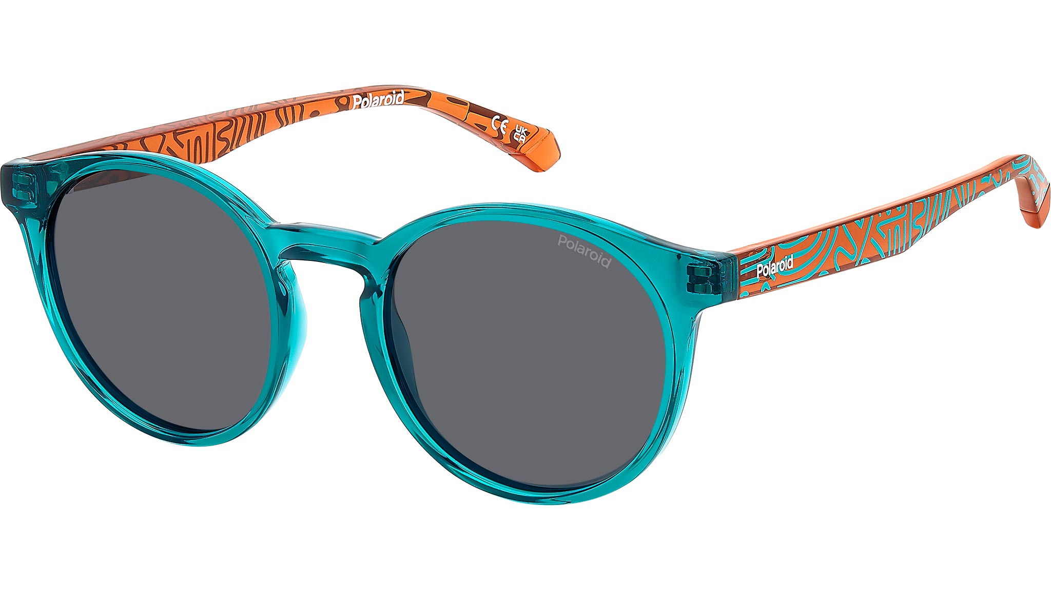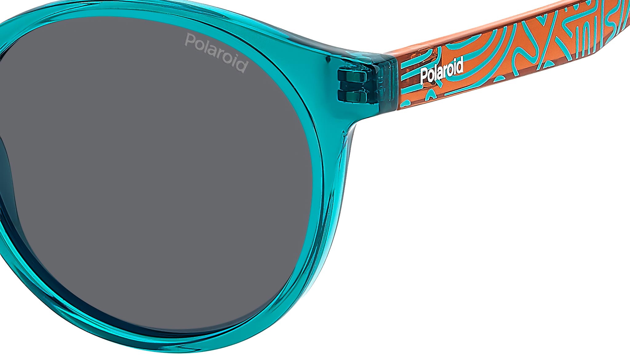 Occhiali da sole Polaroid Kids PLD 8061/S TCF M9 junior con montatura in policarbonato turchese e lenti grigio polarizzate. Occhiali da sole Polaroid di forma pantos dedicati a bambini e bambine dai 7 ai 10 anni di età. Pensati per un look giocoso, sono caratterizzati da colori vivaci declinati in proposte bi-color o con pattern grafico. Sono l’alleato perfetto nelle giornate all’aria aperta: la costruzione in policarbonato è leggera, mentre le lenti polarizzate proteggono dai raggi UV e offrono una visione definita. Linea: Kids. Codice modello: 207385. Codice colore: TCF M9. Rivenditore autorizzato Polaroid Kids online. Gli occhiali vengono consegnati con custodia e accessori originali e sono coperti dalla garanzia ufficiale di 12 mesi del produttore.