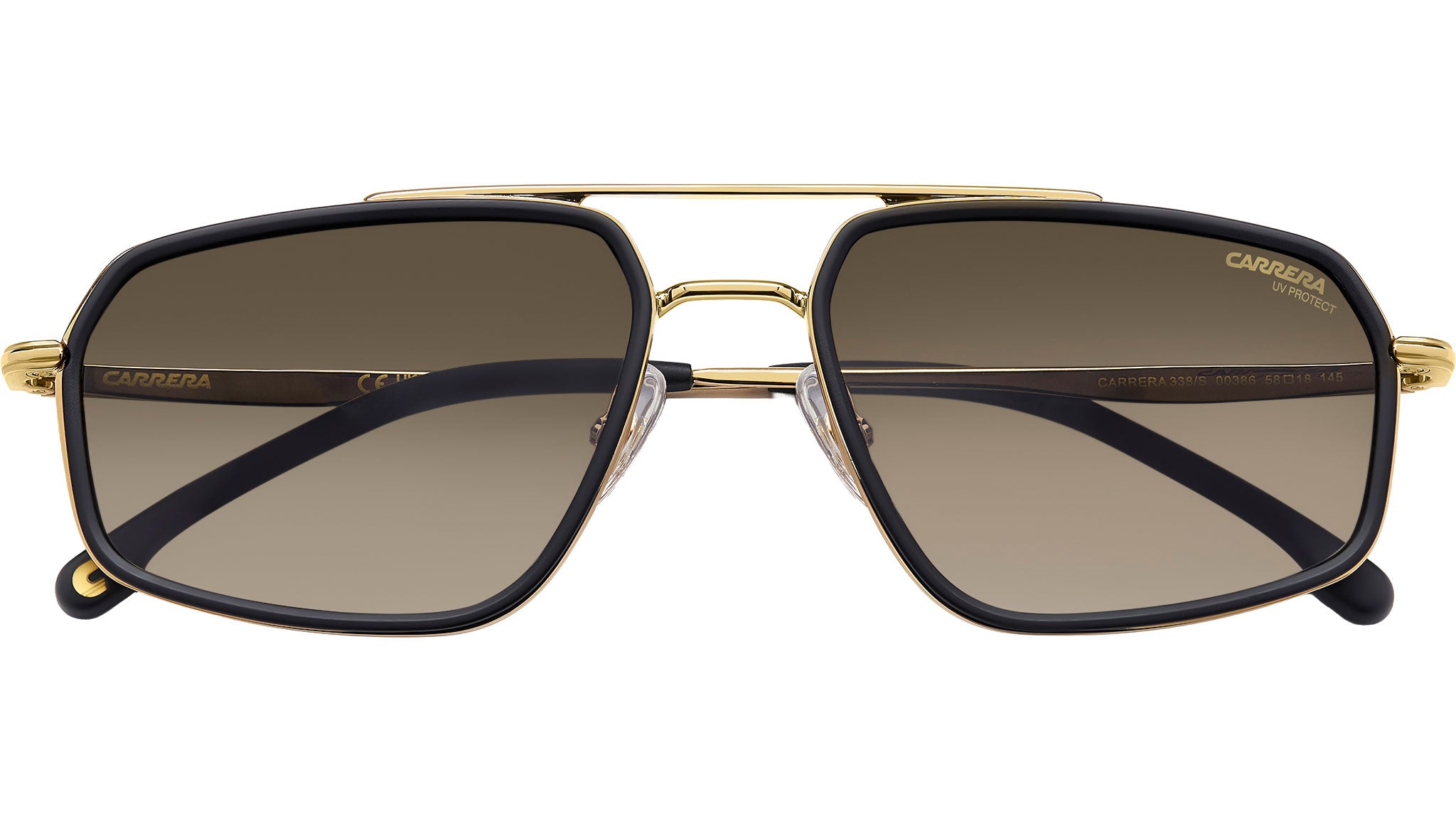 Occhiali da sole Carrera 338/S 003 86 uomo con montatura aviatore in metallo nero opaco e lenti demo. Gli occhiali da sole Carrera sono destinati ad entrare nei cuori – e nel guardaroba – di molti. A renderli iconici è la montatura minimale in metallo, arricchita dal rivestimento iniettato sul frontale in rima cromatica con i terminali. Ulteriori elementi caratterizzanti: il doppio ponte, le aste a pinna e la possibilità di montare lenti graduate. Il modello arriva anche nella variante con terminali multistrato oppure con lenti polarizzate. Linea: Signature. Codice modello: 207602. Codice colore: 003 86. Rivenditore autorizzato Carrera online. Gli occhiali vengono consegnati con custodia e accessori originali e sono coperti dalla garanzia ufficiale di 12 mesi del produttore.