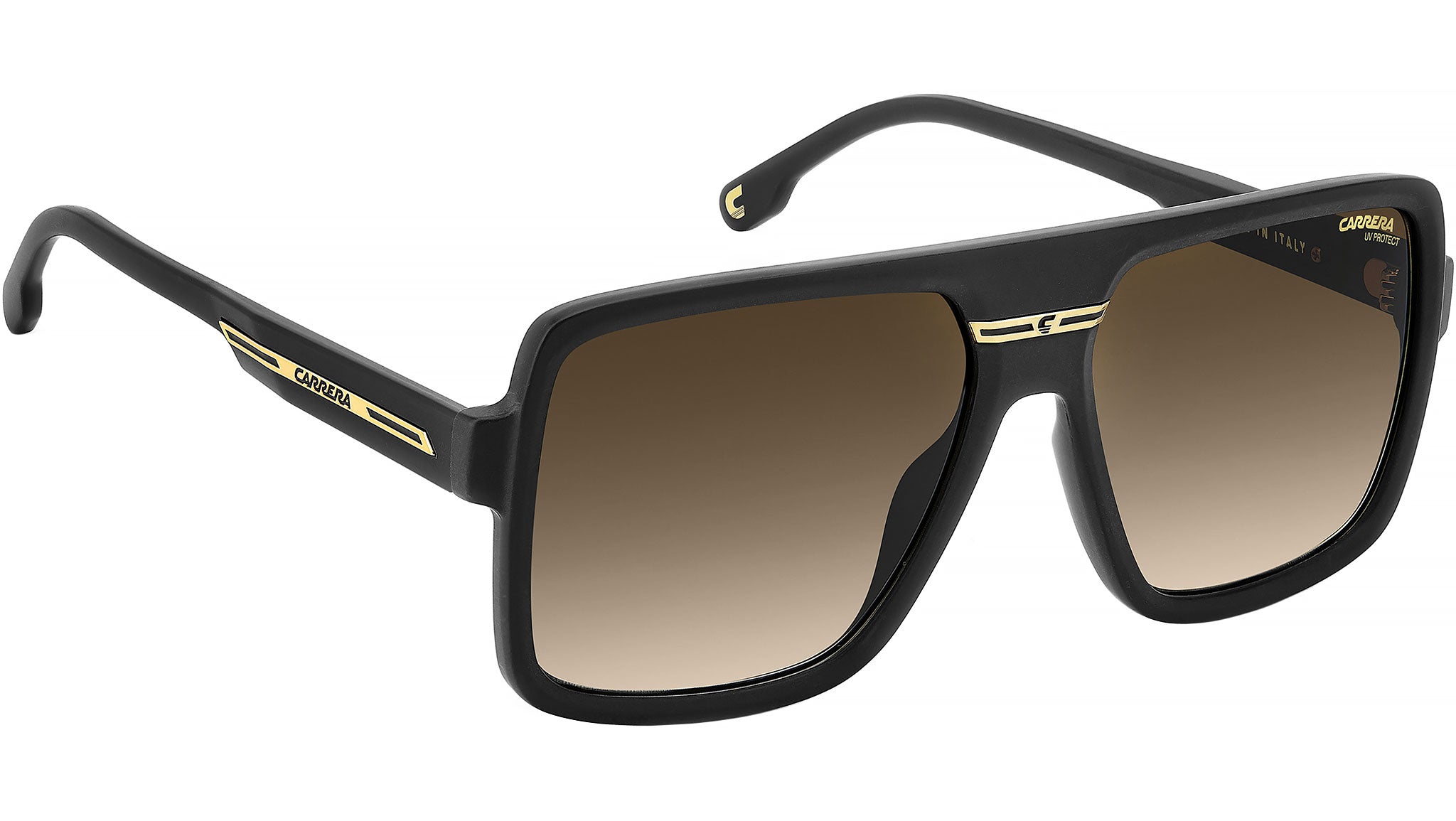 Occhiali da sole Carrera VICTORY C 09/S I46 86 uomo con montatura rettangolare in poliammide ecologica nero opaco oro e lenti demo. Gli occhiali da sole Carrera sanno prendersi la scena. La montatura iniettata presenta linee nette e scolpite, ed è realizzata in Italia con una maniacale attenzione al dettaglio. Sul ponte e sulle aste, gli inserti metallici con la flag e il logo “C” reinterpretano i simboli Carrera. Disponibili le opzioni specchiata e polarizzata. Linea: Flag. Codice modello: 207883. Codice colore: I46 86. Rivenditore autorizzato Carrera online. Gli occhiali vengono consegnati con custodia e accessori originali e sono coperti dalla garanzia ufficiale di 12 mesi del produttore.
