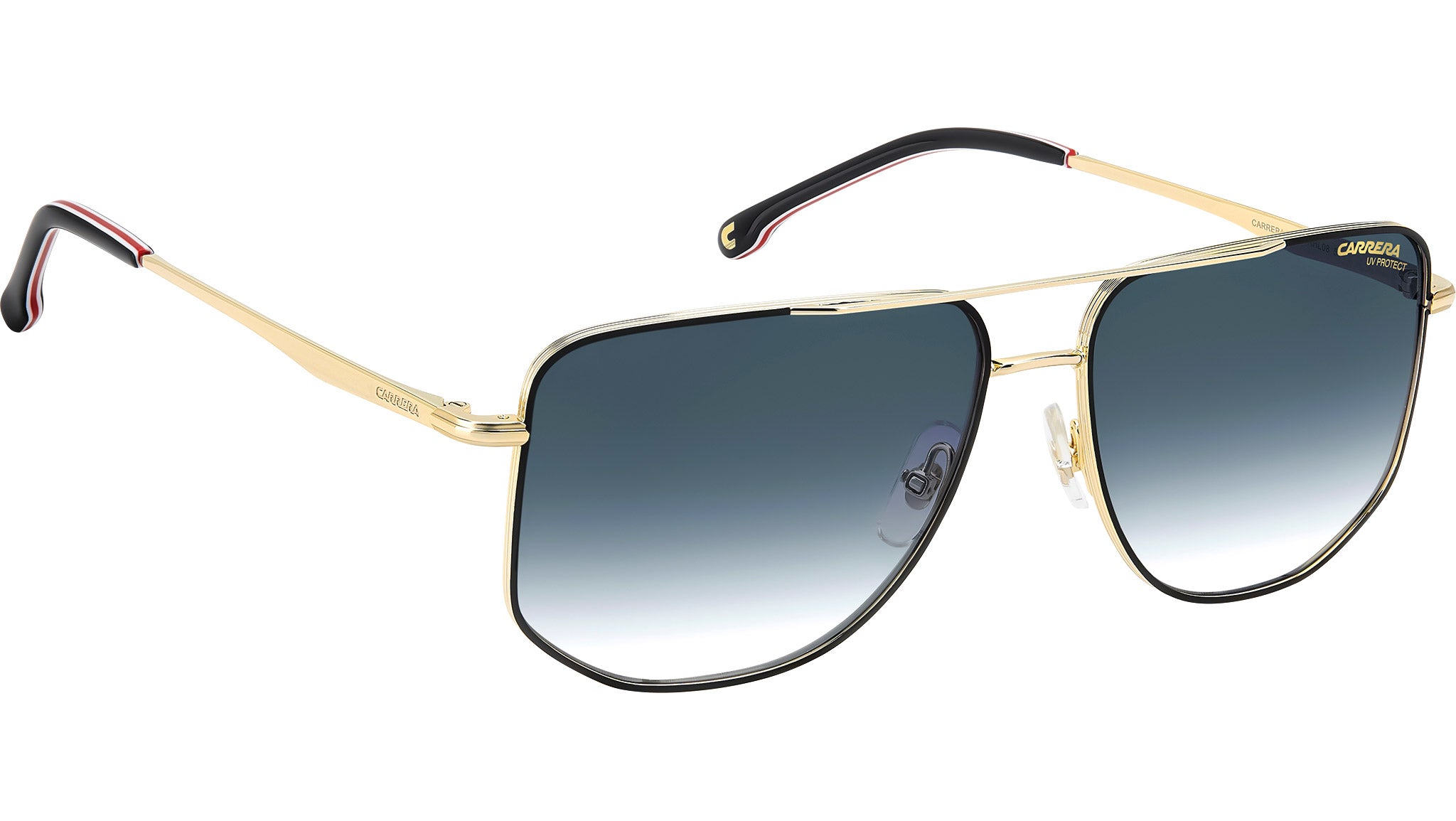 Occhiali da sole Carrera 355/S RHL 08 uomo con montatura rettangolare in metallo oro nero e lenti demo. Un occhiale da sole che celebra l’heritage Carrera. Il frontale con doppio ponte è un classico che non stanca mai. Le aste in metallo arrivano dagli archivi Carrera, con l’aggancio al frontale plasmato nell’iconica flag. I terminali in acetato sono proposti anche in versione multistrato con i colori del brand. Le lenti sono sfumate, ancora più apprezzabili quando polarizzate oppure ultrapolar. Linea: Signature. Codice modello: 207881. Codice colore: RHL 08. Rivenditore autorizzato Carrera online. Gli occhiali vengono consegnati con custodia e accessori originali e sono coperti dalla garanzia ufficiale di 12 mesi del produttore.