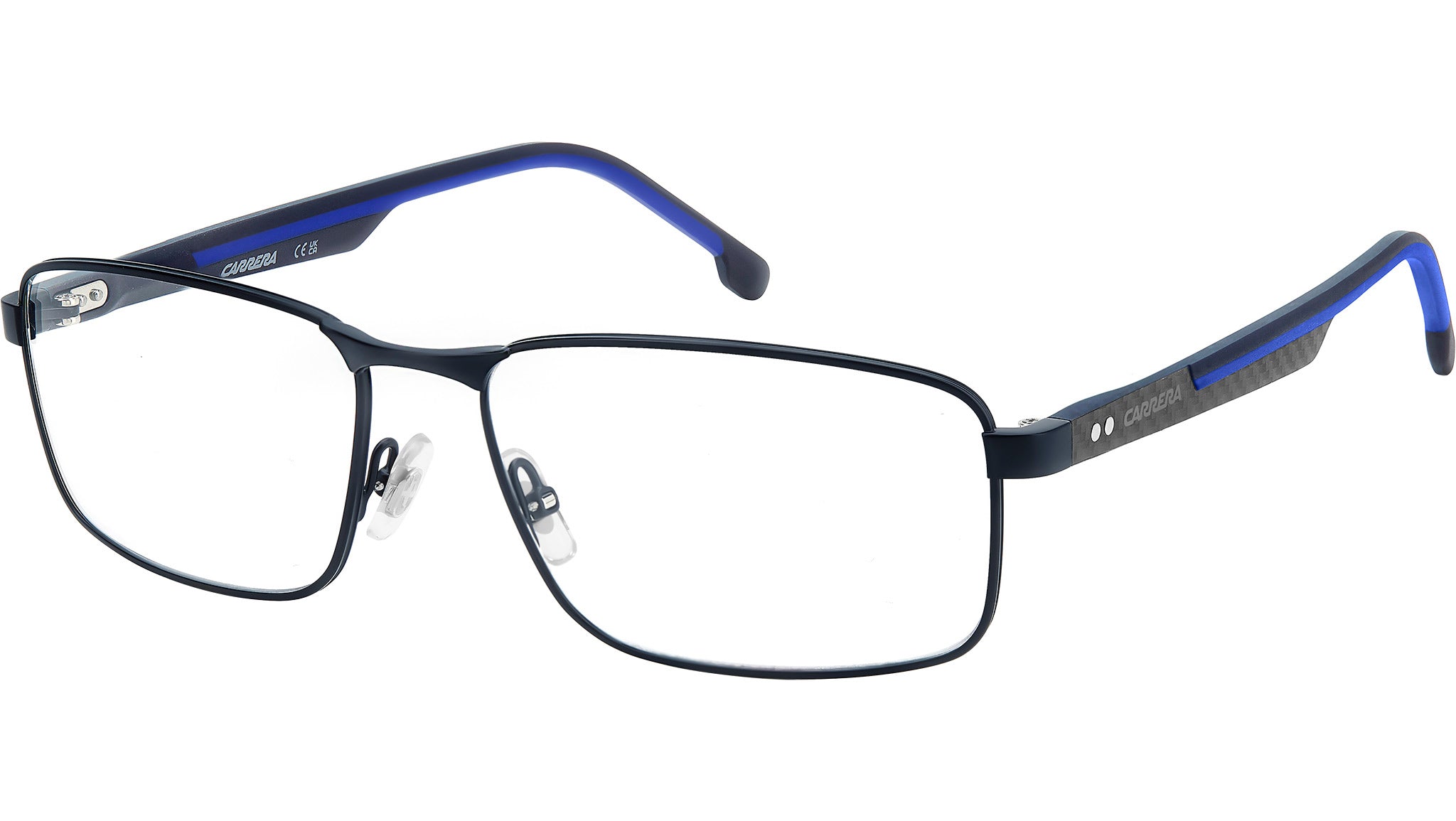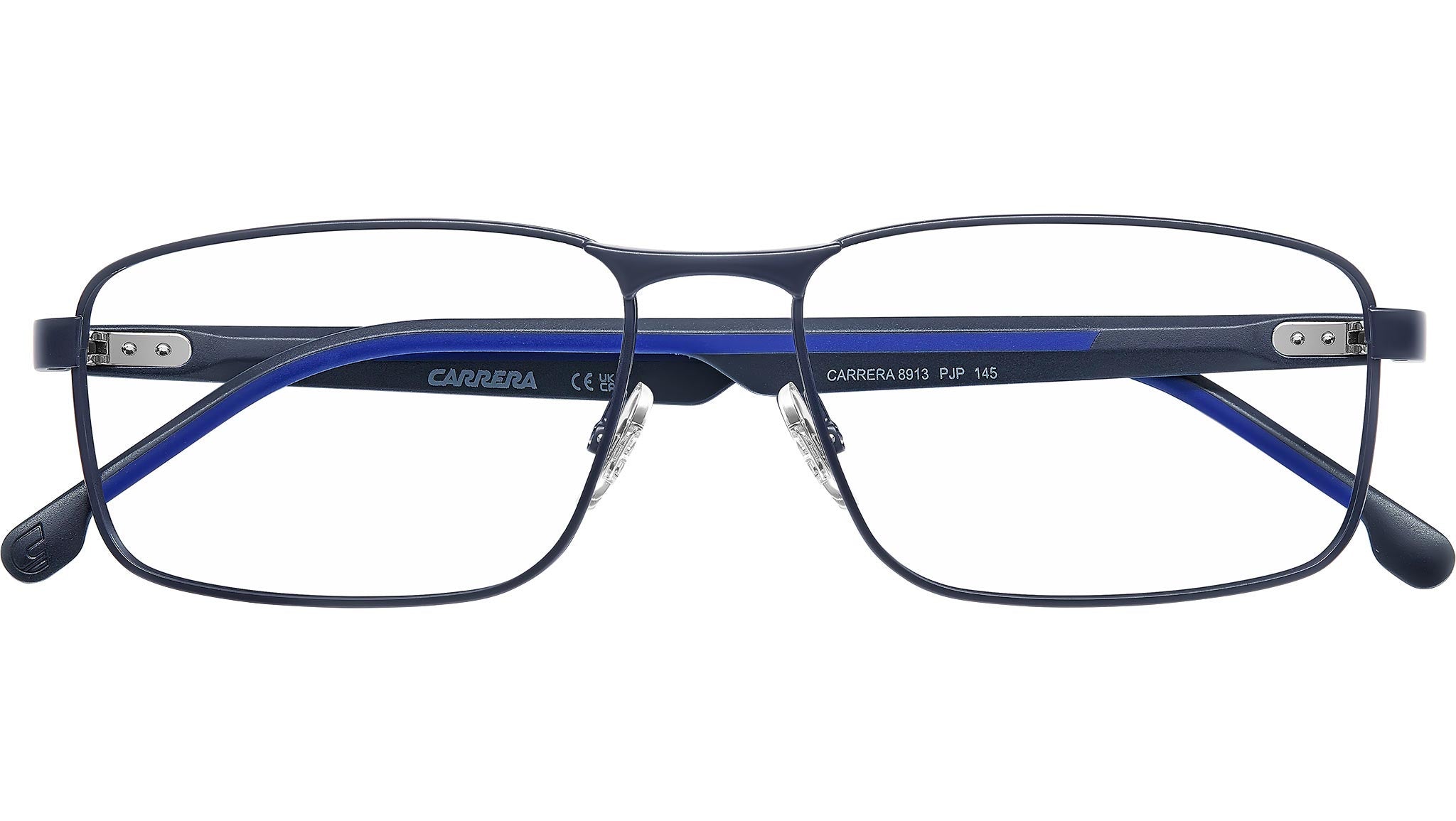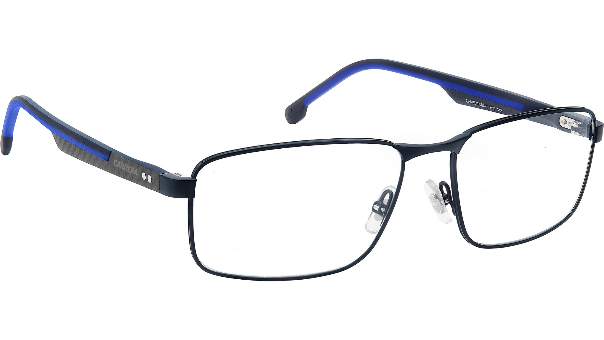 Occhiali da vista Carrera 8913 PJP uomo con montatura rettangolare in metallo blu e lenti demo. Carrera sceglie la fibra di carbonio per un occhiale da vista di qualità premium. Applica questo materiale leggero e resistente alle aste silm con design texturizzato. Aumentano il comfort i terminali gommati, con colorazione a contrasto oppure tono su tono. Lo sguardo è fisso sul traguardo dei propri obbietti, vestito dal frontale rettangolare in leggero acciaio inossidabile con naselli regolabili. Per uno stile concreto, senza fronzoli né distrazioni. Linea: Sport. Codice modello: 109526. Codice colore: PJP. Rivenditore autorizzato Carrera online. Gli occhiali vengono consegnati con custodia e accessori originali e sono coperti dalla garanzia ufficiale di 12 mesi del produttore.