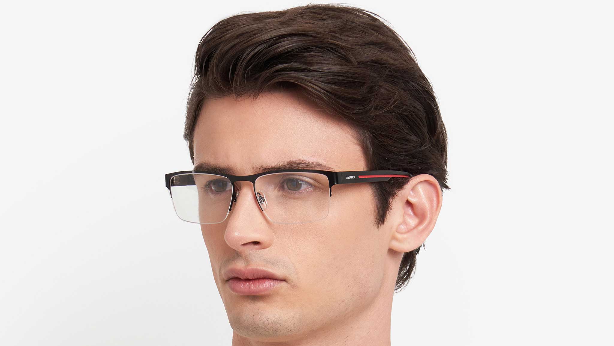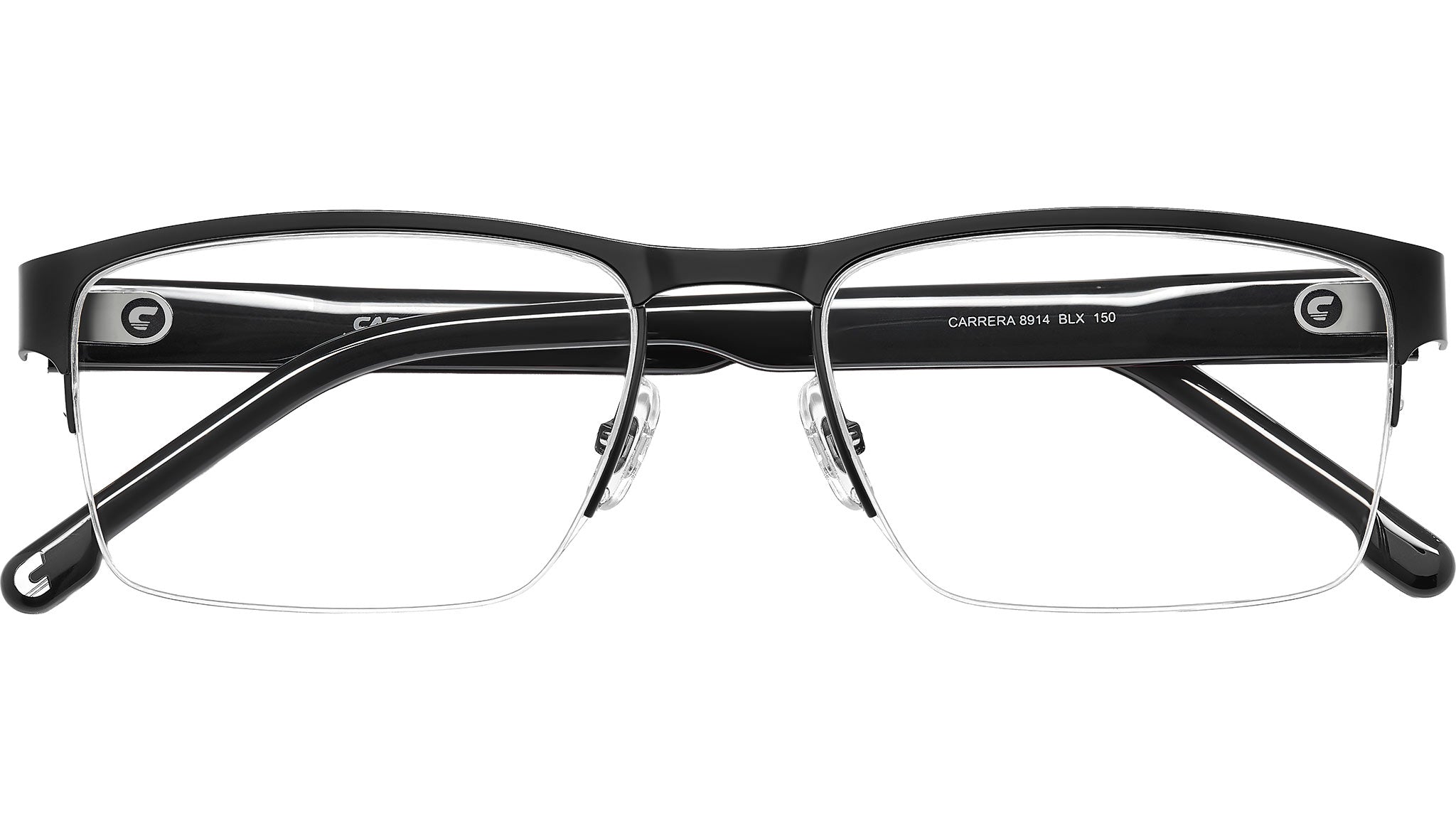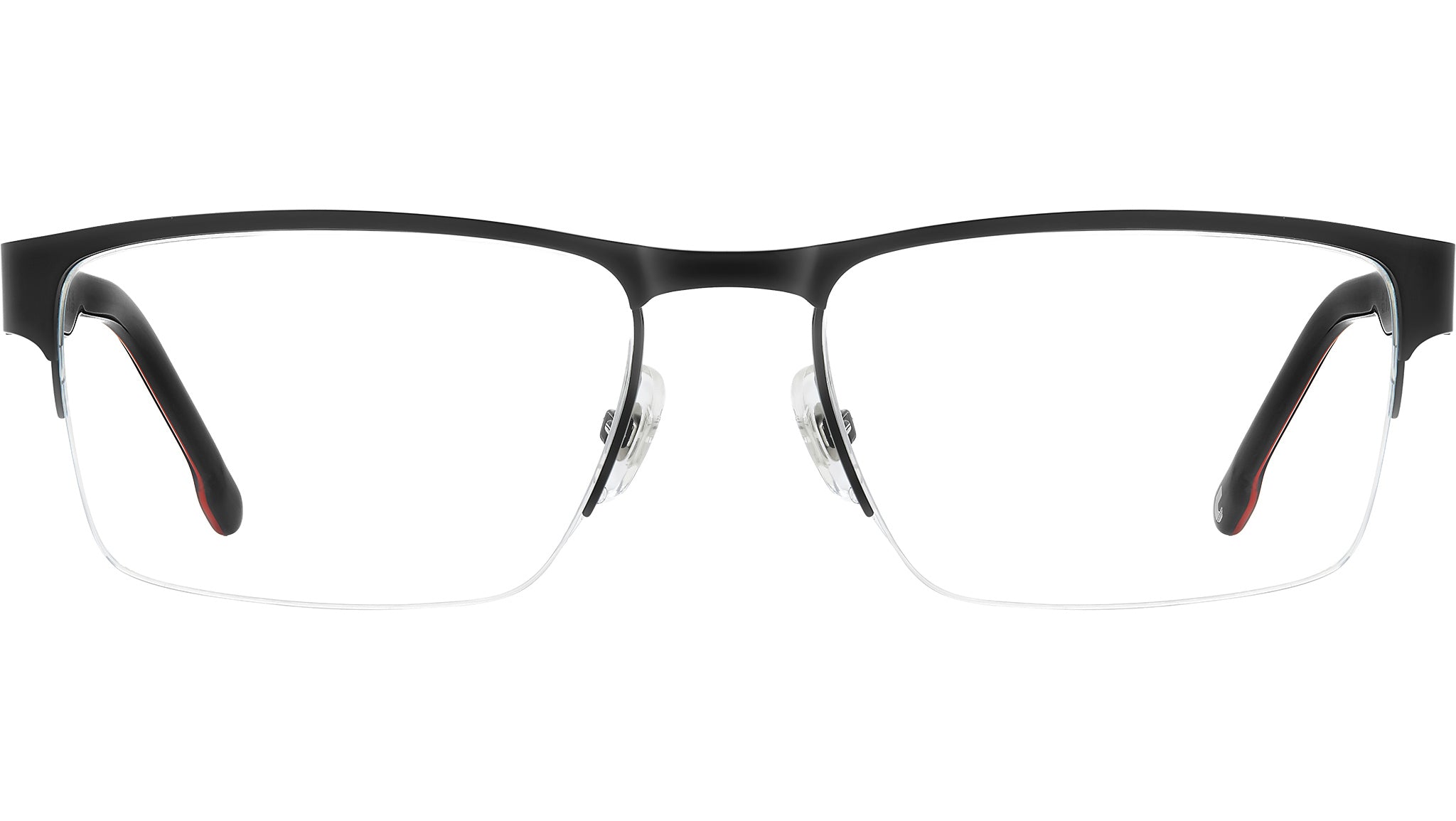 Occhiali da vista Carrera 8914 BLX uomo con montatura rettangolare in metallo nero opaco rosso e lenti demo. Carrera prende molto sul serio il comfort e la versatilità: il risultato è questo occhiale da vista con frontale a mezza montatura. La vestibilità è personalizzata grazie a naselli regolabili, cerniere flessibili e la possibilità di scegliere tra due diversi calibri. Lo stile è definito dalle nuove aste in acetato, scolpite a mimare la flag Carrera. Da scegliere tono su tono, blu, oppure in rosso - colore simbolo Carrera. Linea: Sport. Codice modello: 109536. Codice colore: BLX. Rivenditore autorizzato Carrera online. Gli occhiali vengono consegnati con custodia e accessori originali e sono coperti dalla garanzia ufficiale di 12 mesi del produttore.