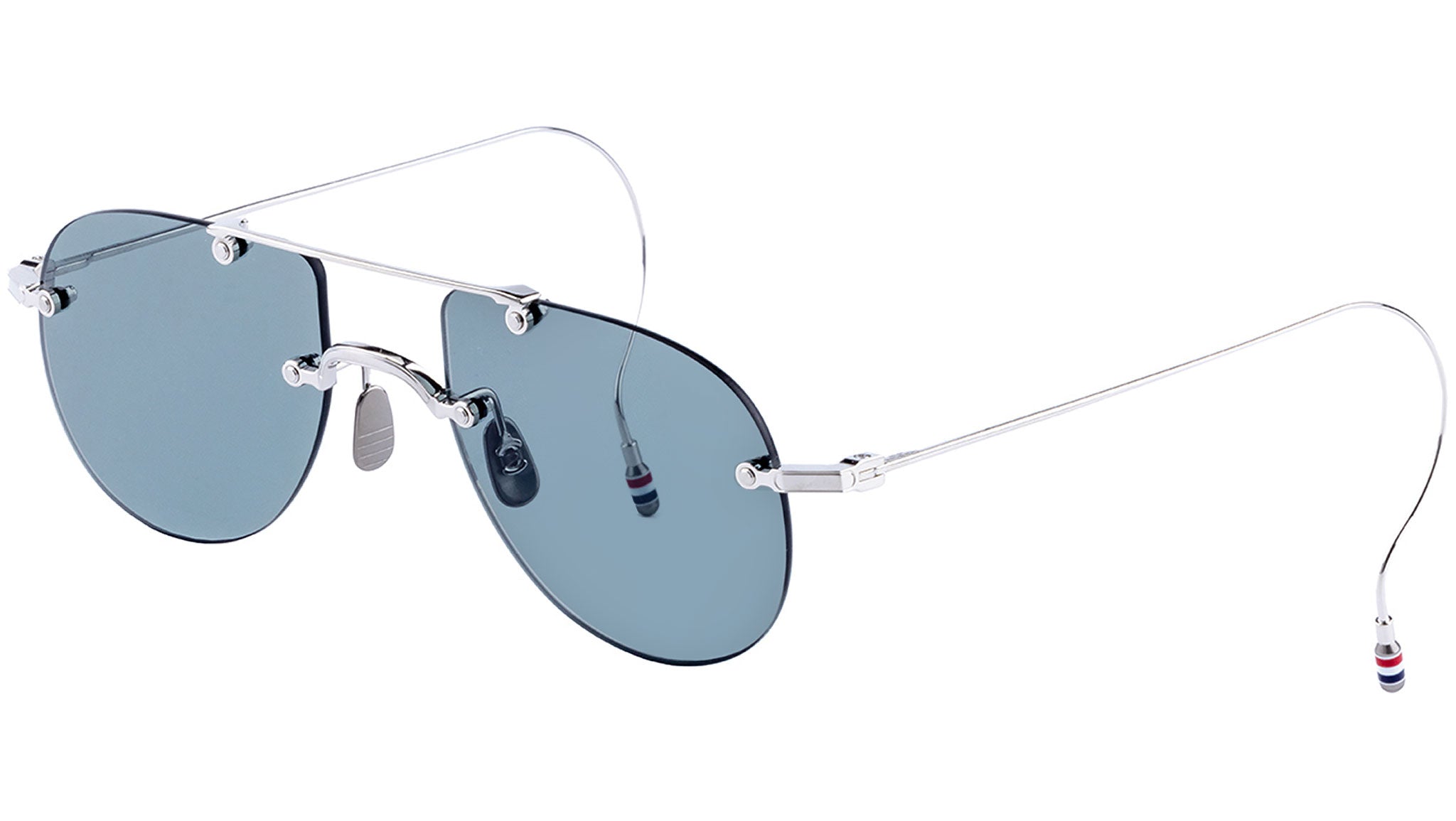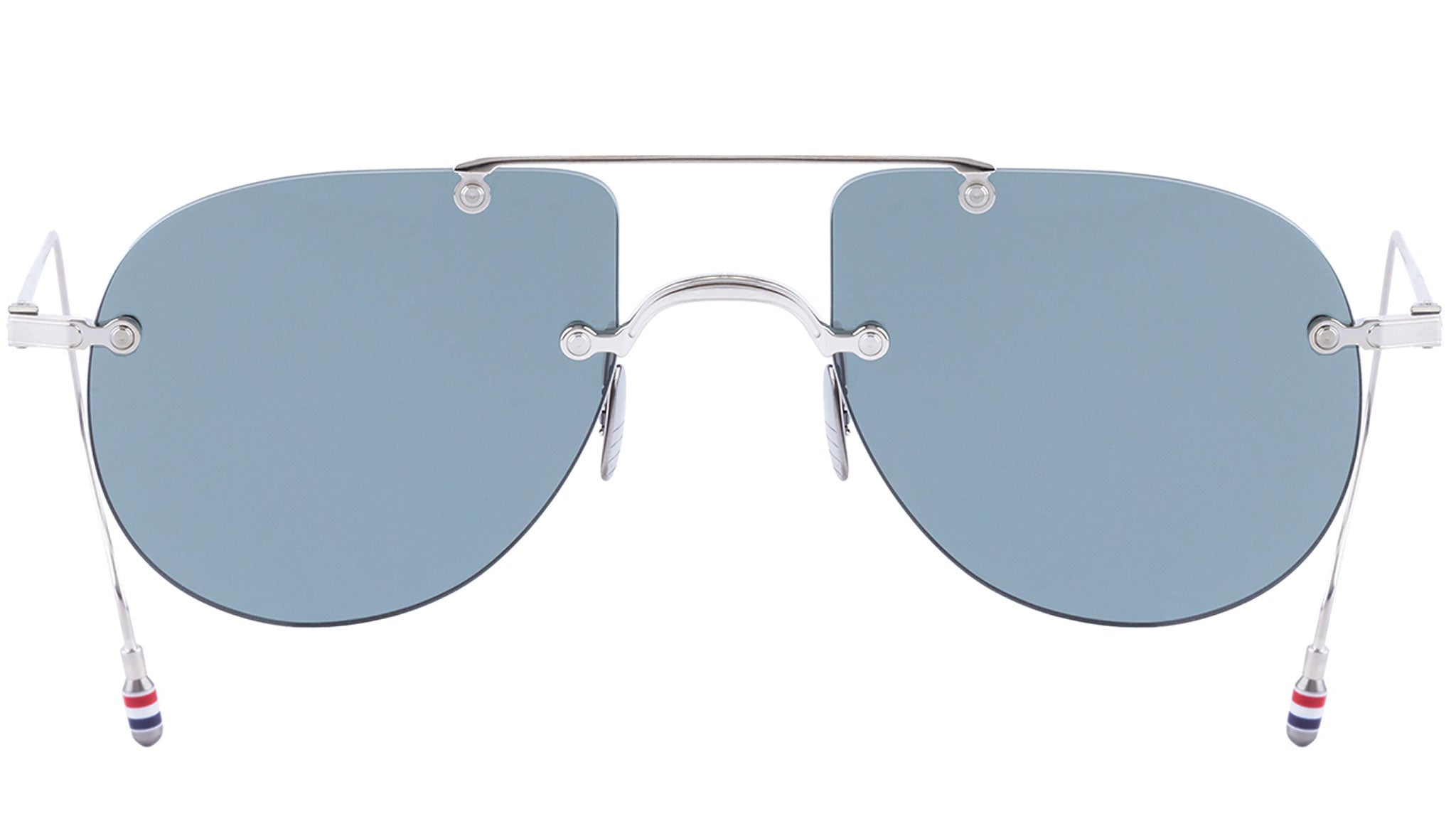 Occhiali da sole Thom Browne unisex modello UES939A con montatura rimless in titanio argento placcato e lenti color grigio scuro. Codice Brand: UES939A. Codice colore: 045. Rivenditore autorizzato Thom Browne online. Gli occhiali vengono consegnati con custodia e accessori originali e sono coperti da garanzia standard di 12 mesi del produttore.