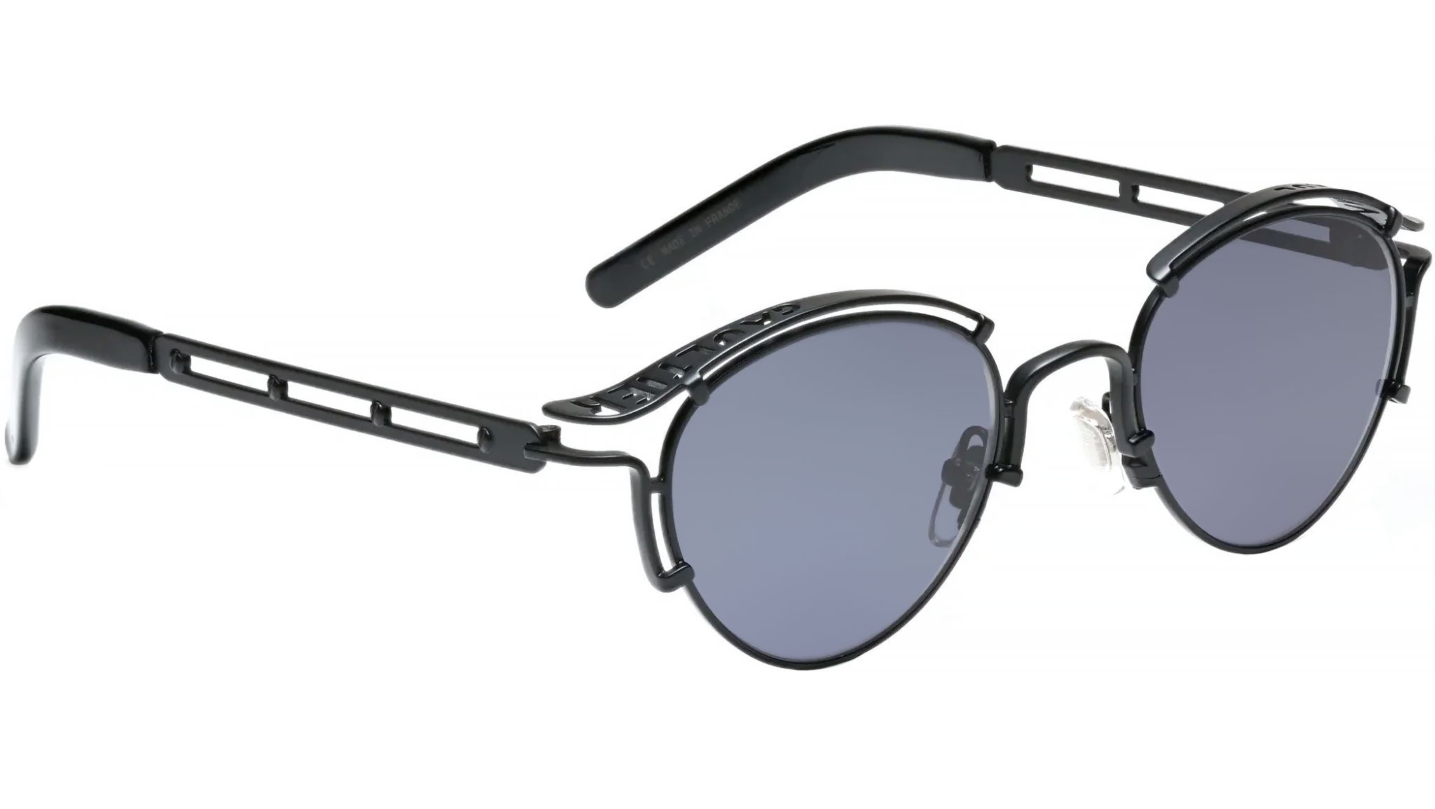 Crafted in France, the Jean Paul Gaultier Sourcil Black sunglasses feature an elegant oval silhouette with a striking black metal frame and a distinctive metallic brow detail that pays homage to the brand’s avant-garde heritage. The design is enhanced by grey lenses equipped with Category 3 UV filters, providing high sun protection alongside anti-glare and scratch-resistant coatings for lasting clarity. The frame is composed of stainless steel and nickel silver, complemented by premium Mazzucchelli acetate temple tips for added comfort. The Jean Paul Gaultier logo is subtly integrated into the design, underscoring its exclusivity. With a lens width of 49mm and a bridge width of 23mm, this one-size model offers a universally flattering fit.