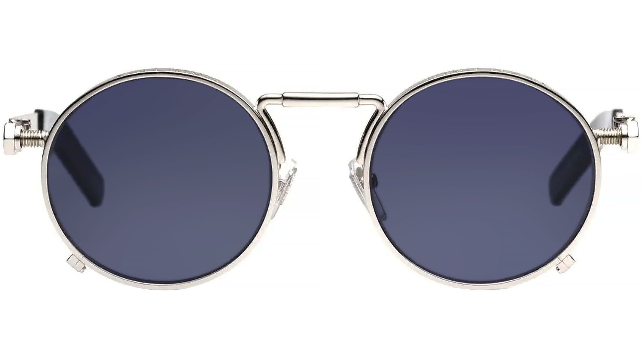 The Jean Paul Gaultier Ressort metal sunglasses showcase a refined round silhouette with silver-toned frames, distinguished by a unique spring detail along the temples that adds a touch of mechanical sophistication. Made in France, this model features high-performance lenses with Category 3 UV filters, offering reliable sun protection along with anti-glare and anti-scratch treatments for enhanced visual comfort and durability. Crafted from a combination of stainless steel, nickel silver, and acetate, the construction is elevated by premium Mazzucchelli acetate temple tips, ensuring both luxury and comfort. The discreet Jean Paul Gaultier logo completes the design with a signature of exclusivity.