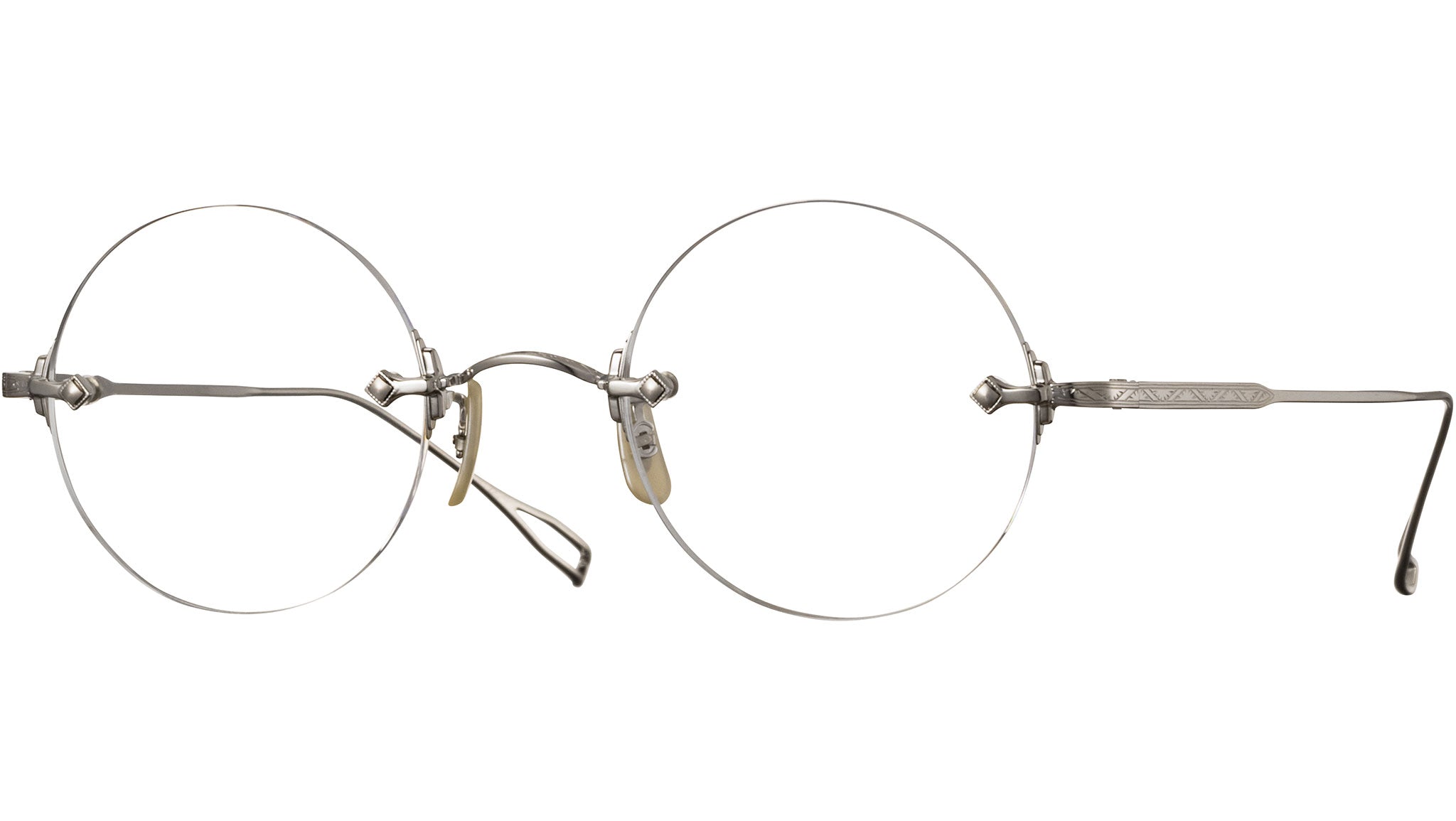 La montatura da vista Eyevan Orbit ripropone un raffinato design two-point, ispirato a uno degli stili vintage americani degli anni Trenta, documentati nei primi cataloghi ereditati dal team di design originario Eyevan. Partendo dalla tecnica d’epoca, che prevedeva l’inserimento di una piastra tra endpiece e lente, il modello integra una struttura più moderna a doppia strap flessibile, che ne migliora elasticità e resistenza. Per ottenere un’estetica frontale pulita, le parti che sostengono le lenti sono realizzate senza viti a vista e dialogano in modo continuo con componenti laterali Tsukami, che le bloccano con precisione. La struttura in puro titanio consente una regolazione estremamente accurata e assicura comfort elevato. Raffinate incisioni eseguite a mano da artigiani esperti valorizzano il passaggio dall'innesto all’asta, mentre il ponte è arricchito da delicati intagli lungo i profili superiore e inferiore, che donano profondità visiva e dinamismo all’insieme.