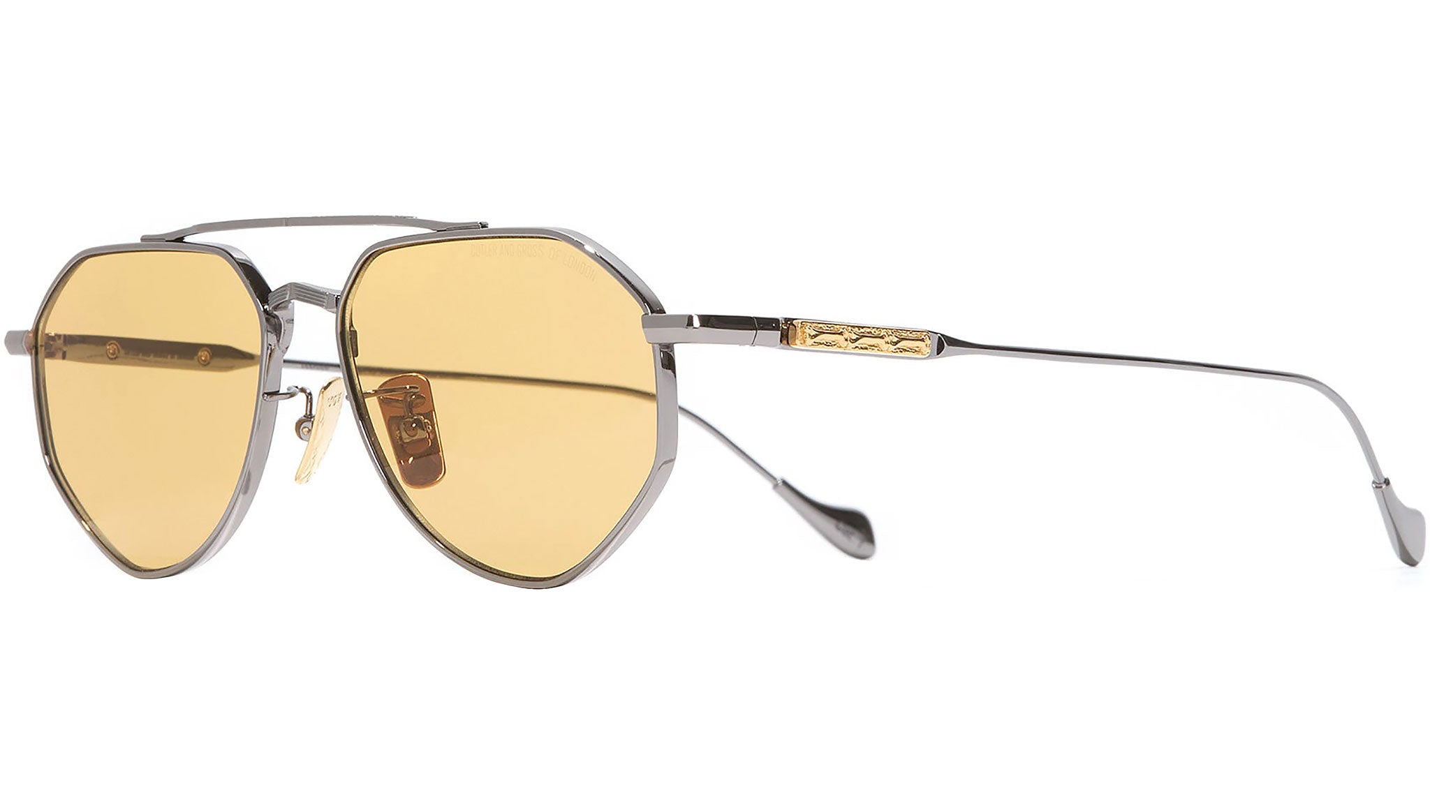 Occhiali da sole Cutler and Gross Lynott 017 01 unisex con montatura aviatore in titanio canna di fucile e lenti color giallo. Linea: The Great Frog. Codice modello: 017. Codice colore: 01. Rivenditore autorizzato Cutler and Gross online. Gli occhiali vengono consegnati con custodia e accessori originali e sono coperti dalla garanzia ufficiale di 12 mesi del produttore.