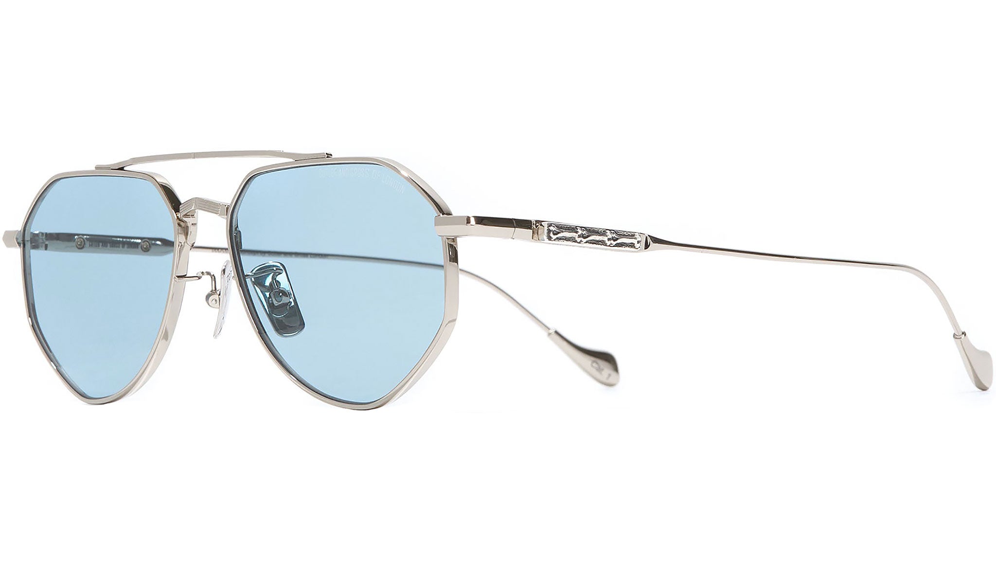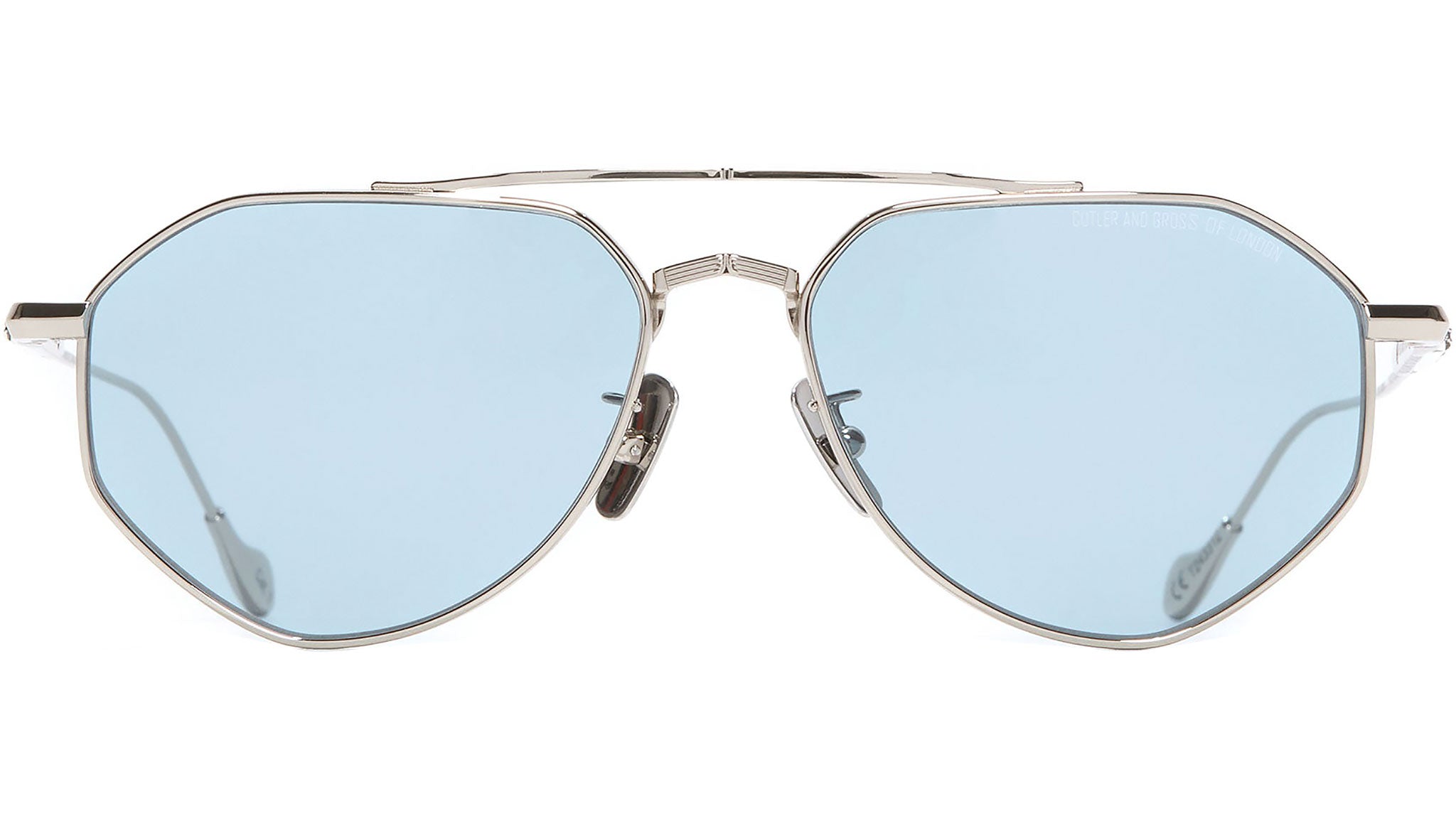 Occhiali da sole Cutler and Gross Lynott 017 02 unisex con montatura aviatore in titanio argento e lenti color blu. Linea: The Great Frog. Codice modello: 017. Codice colore: 02. Rivenditore autorizzato Cutler and Gross online. Gli occhiali vengono consegnati con custodia e accessori originali e sono coperti dalla garanzia ufficiale di 12 mesi del produttore.
