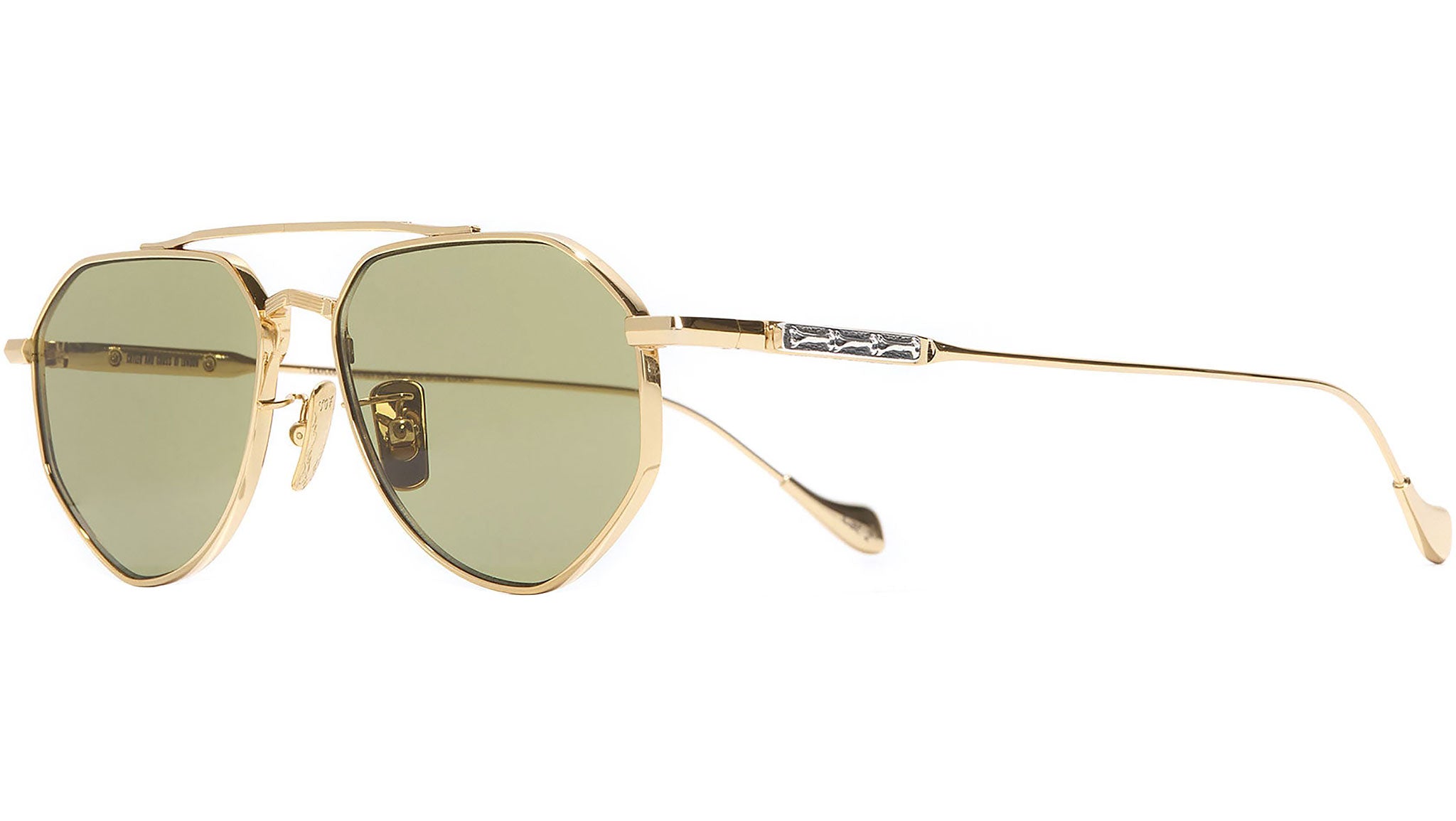 Occhiali da sole Cutler and Gross Lynott 017 03 unisex con montatura aviatore in titanio oro e lenti color verde. Linea: The Great Frog. Codice modello: 017. Codice colore: 03. Rivenditore autorizzato Cutler and Gross online. Gli occhiali vengono consegnati con custodia e accessori originali e sono coperti dalla garanzia ufficiale di 12 mesi del produttore.