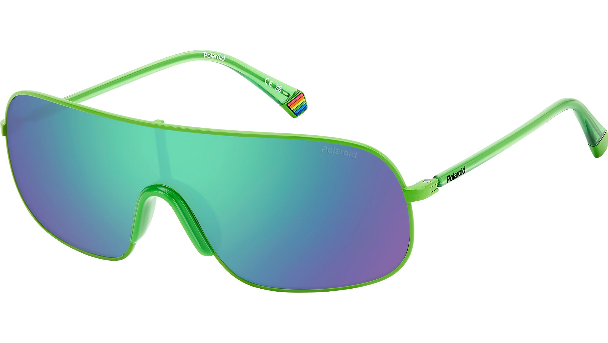 Occhiali da sole Polaroid PLD 6222/S 1ED 5Z unisex con montatura in metallo verde e lenti grigio-verde a specchio polarizzate. Gli anni ‘80 non sono mai stati così vicini grazie a questi occhiali da sole Polaroid a mascherina. L’ispirazione arriva dagli archivi Polaroid, l’interpretazione è attualissima. Un profilo in acciaio inossidabile sostiene la maxi-lente, i naselli in policarbonato offrono comfort tangibile. La montatura è firmata dal logo stampato e dall’inserto arcobaleno sui terminali. Tra le varianti disponibili ci sono le sei colorazioni dell’arcobaleno Polaroid: vivaci, divertenti e pop. Linea: Cool. Codice modello: 206894. Codice colore: 1ED 5Z. Rivenditore autorizzato Polaroid online. Gli occhiali vengono consegnati con custodia e accessori originali e sono coperti dalla garanzia ufficiale di 12 mesi del produttore.
