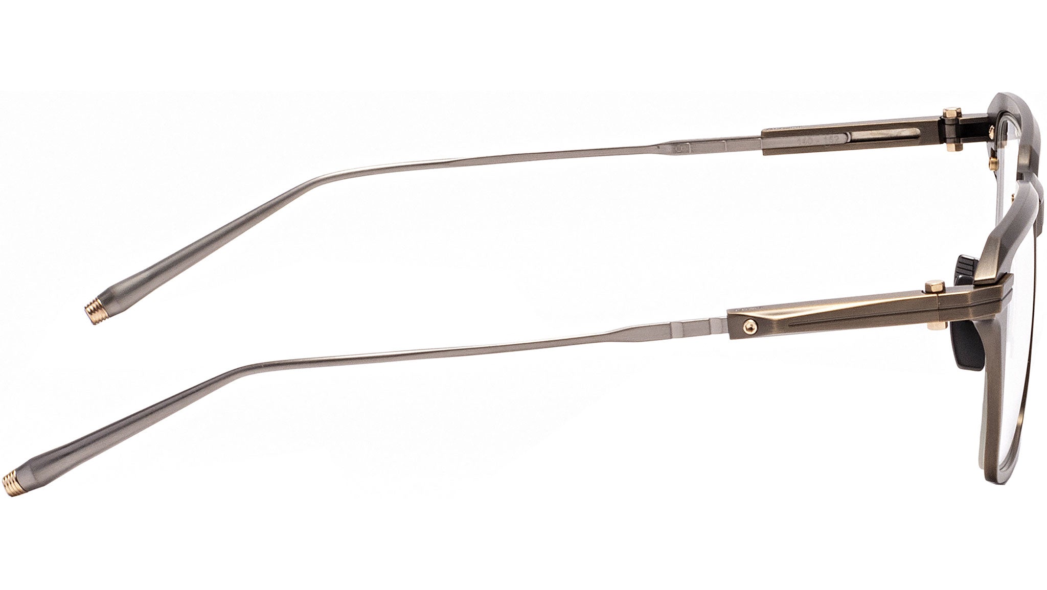 Swift incarna l’incontro tra la precisione della gioielleria e l’innovazione dell’orologeria di lusso. Realizzata in titanio giapponese ultraleggero, con finitura oro bianco anticato e palladio nero, la montatura presenta un frontale scolpito e include il sistema esclusivo di regolazione delle aste firmato Akoni, per un comfort su misura. Le lenti CR-39 verde oliva chiaro completano un design che unisce funzionalità avanzata e raffinatezza estetica. Prodotta con cura in Giappone e fornita con custodia rigida, panno in microfibra e certificato di autenticità.