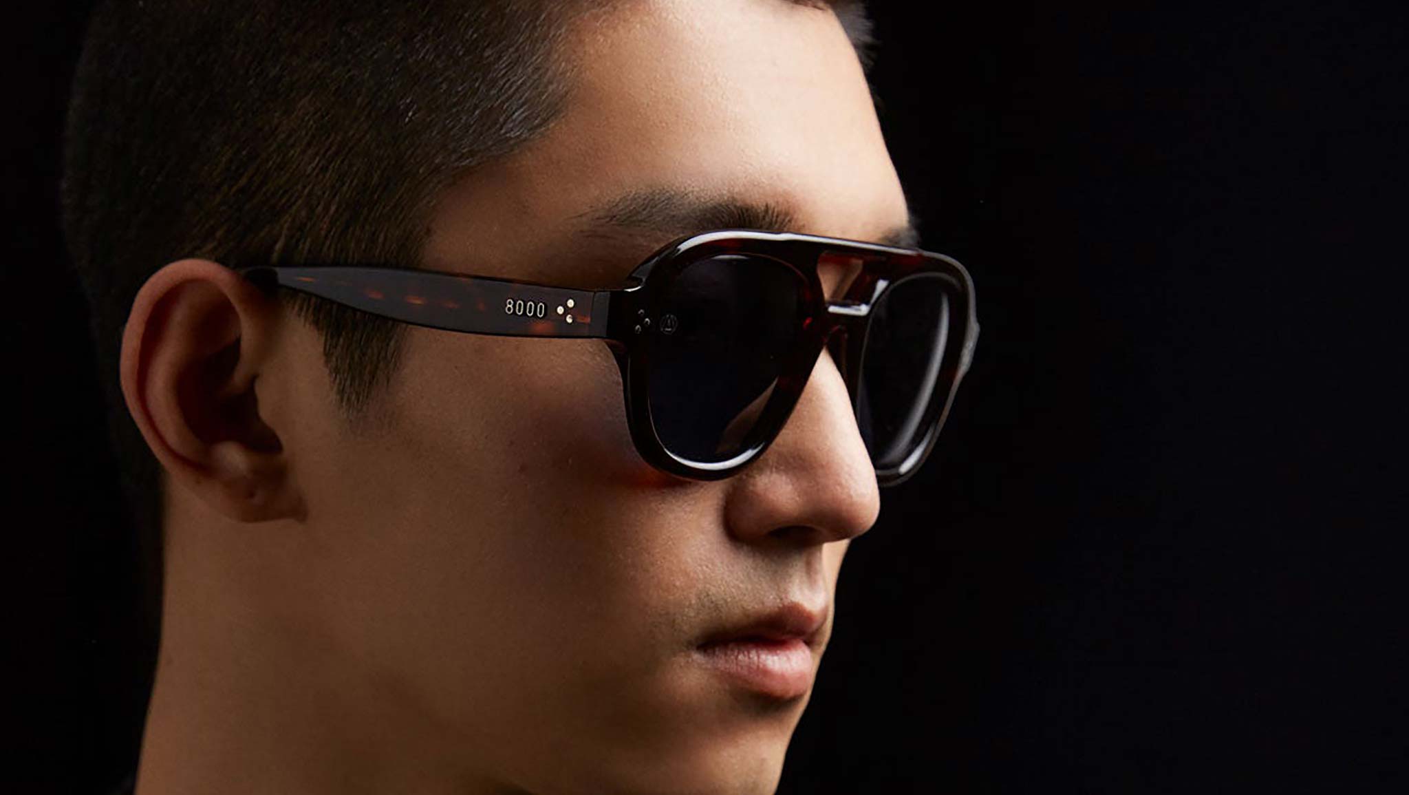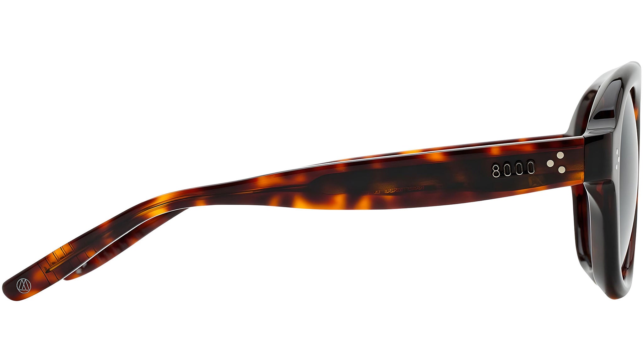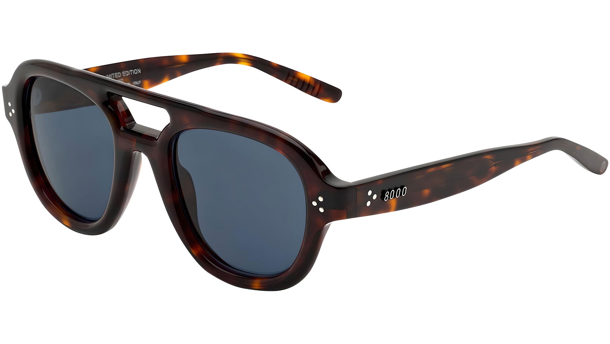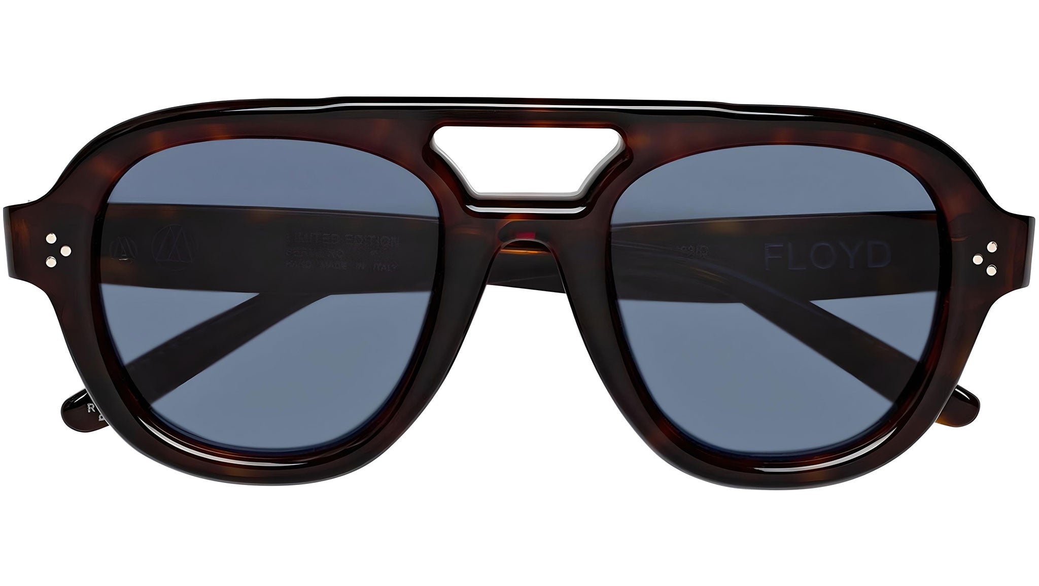 Created for the high-end Italian-American brand Ottomila, Floyd is a statement piece of eyewear designed as a modern reinterpretation of classic aviator silhouettes. The model features a double nose-bridge and thick acetate rims chiseled with care for a soft, curvy design. Ottomila’s signature luxury finishes include hand-polished acetate that elevates its materiality, with metal logo detailing encased within the temple tips. This model comes in a warm Havana acetate and tinted blue lenses. Sizes: R Lens Width: 53 mm. Frame Front: Frame Side: 145 mm. Product Code Size R: VIU