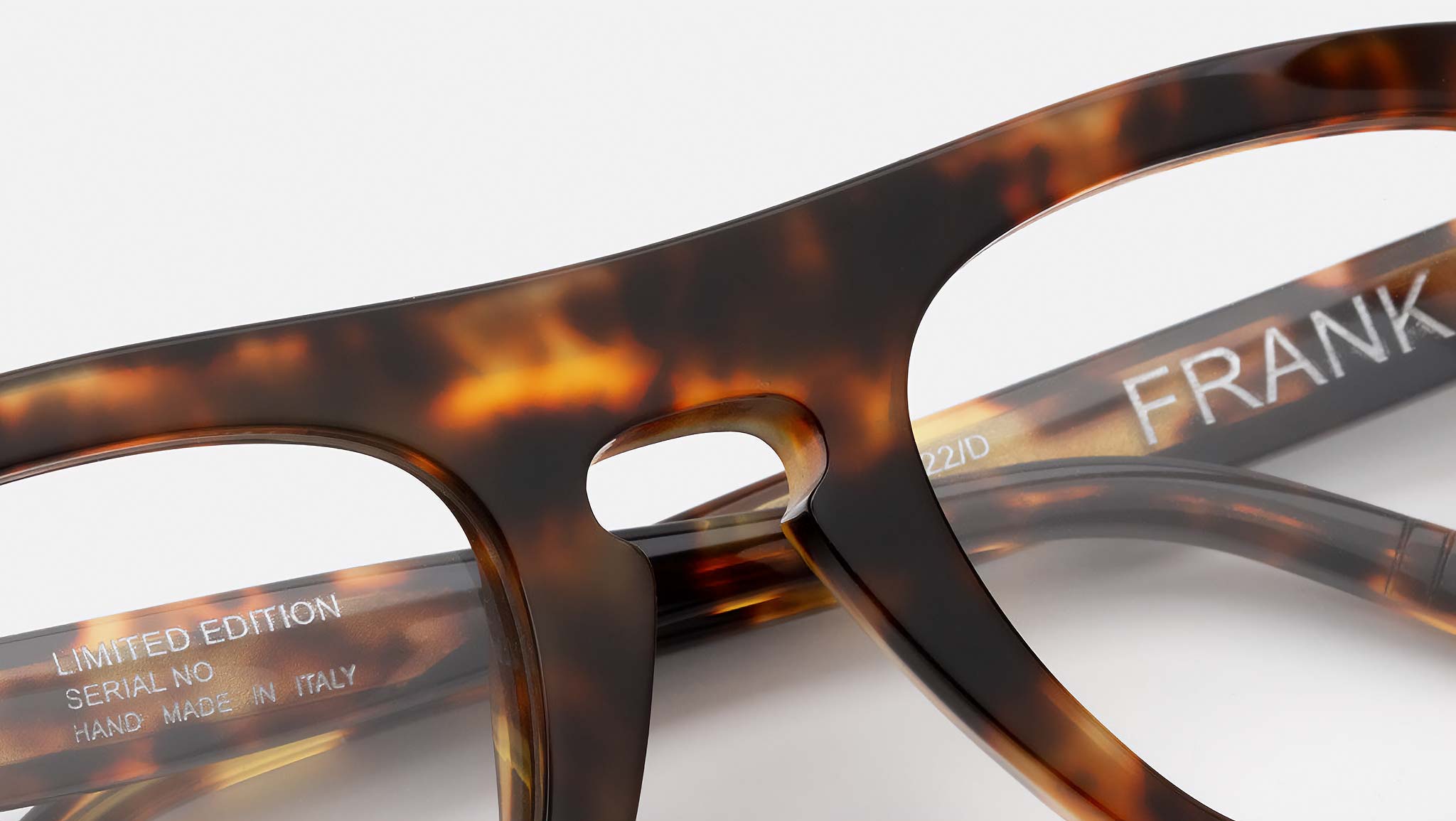 Frank ha una silhouette decisa e precisa, ispirata a forme maschili iconiche. Il modello richiama il lavoro dell'architetto americano Frank Lloyd Wright, con geometrie ben definite e dettagli angolari. La montatura si distingue per un audace ponte nasale e aste spesse, con ampi bordi che incorniciano le lenti squadrate. Questo occhiale deciso è pensato per chi è appassionato di creatività e design moderno. Il modello è realizzato in acetato color tabacco maculato. Dimensioni: larghezza lenti 51 mm, lunghezza aste 145 mm, codice prodotto FSW.