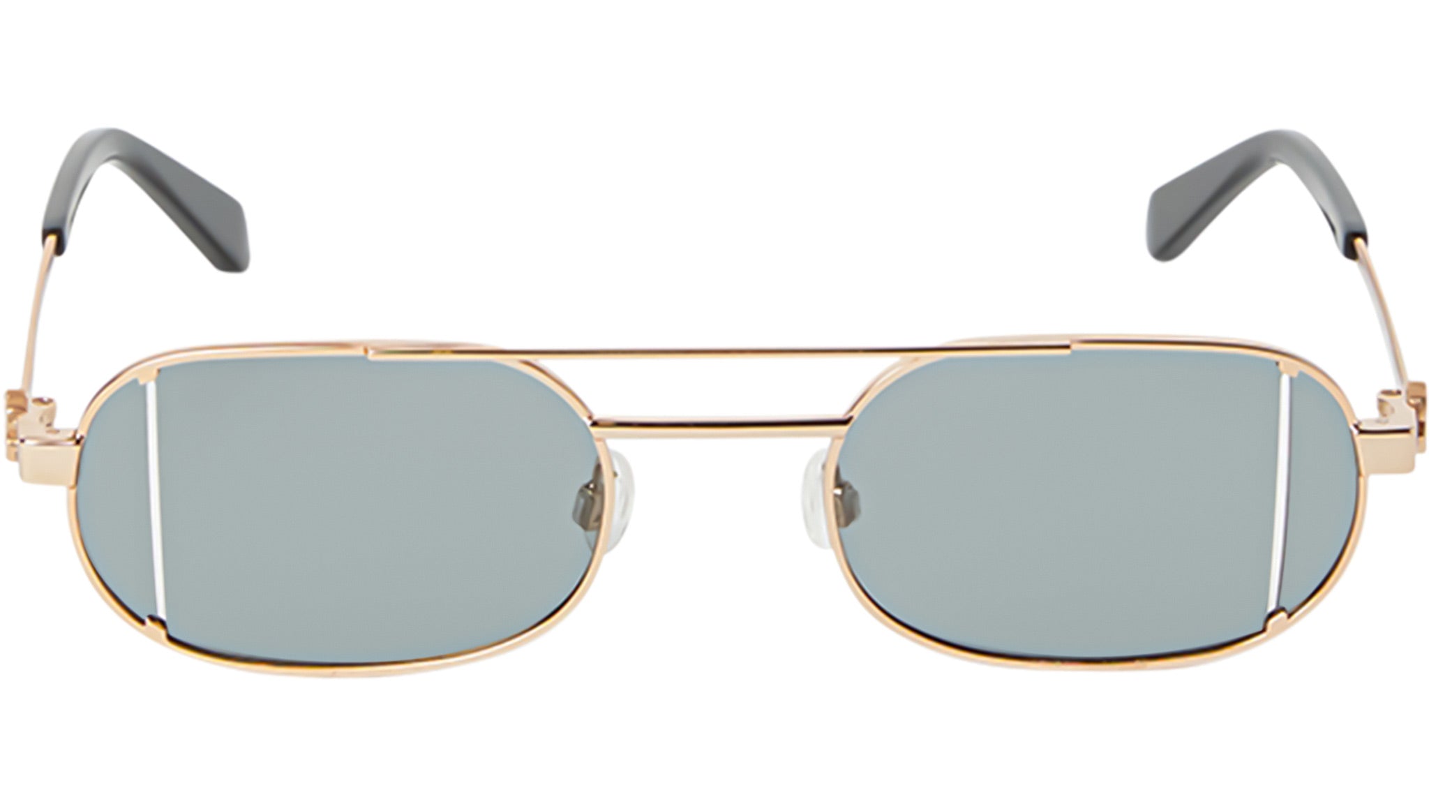Il modello Lynn di Off-White reinterpreta in chiave moderna lo stile pilot classico, fondendo ispirazioni rétro con un’eleganza contemporanea. La silhouette sottile e allungata è arricchita da un doppio ponte in metallo e da naselli in silicone, che garantiscono una vestibilità comoda e adattabile. Ispirandosi a uno degli stili iconici del brand, il design introduce un elemento futuristico con due tagli inaspettati sulle lenti, che esaltano l’eleganza strutturata della montatura. Proposto in tre raffinate varianti cromatiche—una versione total black e due modelli con lenti bicolore nei toni del verde o del marrone—ogni combinazione è abbinata a una base oro, esprimendo un’estetica audace ma senza tempo.