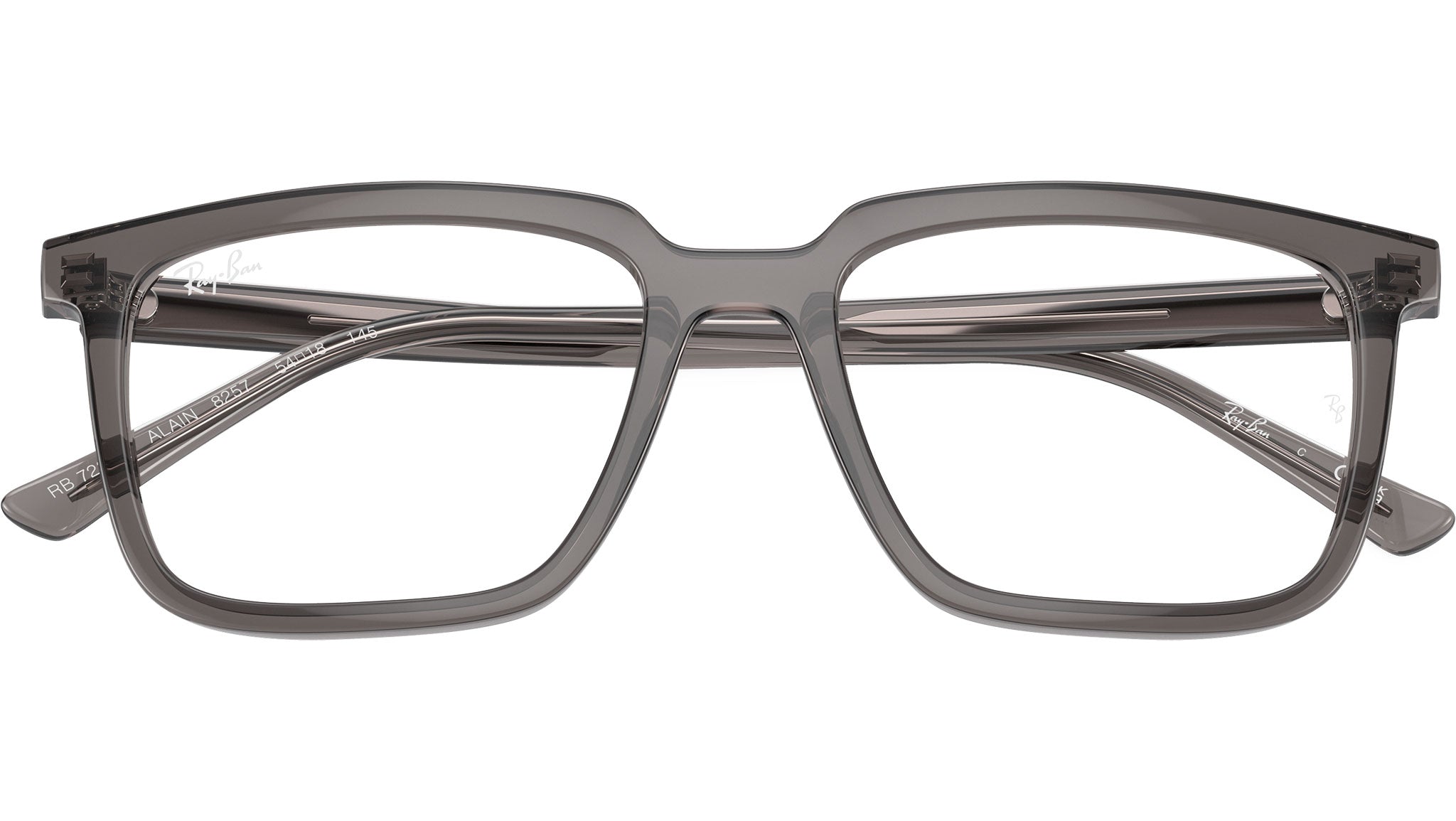 Occhiali da vista Ray-Ban Alain RB7239 8257 unisex con montatura rettangolare in propionato grigio scuro opalino e lenti demo. Vestibilità a ponte alto. Linea: Essentials. Codice modello: 0RX7239. Codice colore: 8257. Rivenditore autorizzato Ray-Ban online. Gli occhiali vengono consegnati con custodia e accessori originali e sono coperti dalla garanzia ufficiale di 12 mesi del produttore.
