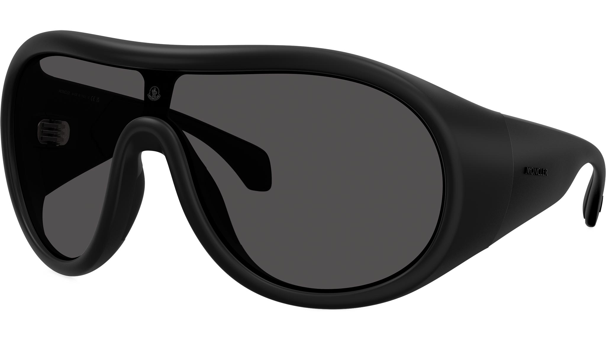 Occhiali da sole Moncler ME8004 Cloche 500687 unisex con montatura aviatore in iniettato nero opaco e lenti in poliammide color grigio scuro. Fit universale. Linea: Sport. Codice modello: 0ME8004. Codice colore: 500687. Made in Italy. Rivenditore autorizzato Moncler online. Gli occhiali vengono consegnati con custodia e accessori originali e sono coperti dalla garanzia ufficiale di 12 mesi del produttore.