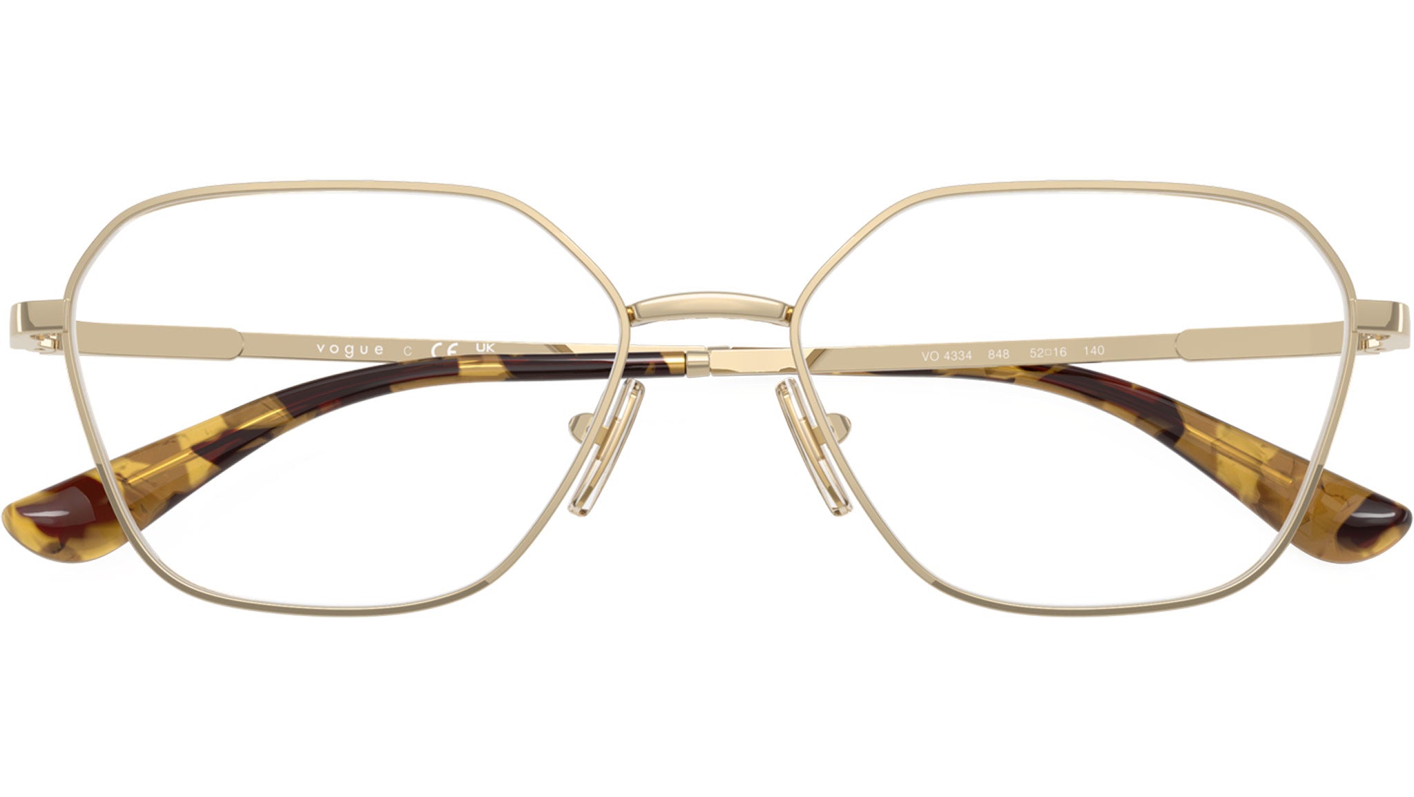 Montatura per occhiali da vista Vogue donna modello VO4334 848 con montatura geometrica in metallo oro chiaro e lenti demo base 4. Naselli regolabili. Linea: In Vogue. Codice Brand: 0VO4334. Codice colore: 848. Rivenditore autorizzato online Vogue Eyewear. Ogni prodotto Vogue viene consegnato con astuccio originale e accessori ed è coperto da garanzia del produttore di 12 mesi.