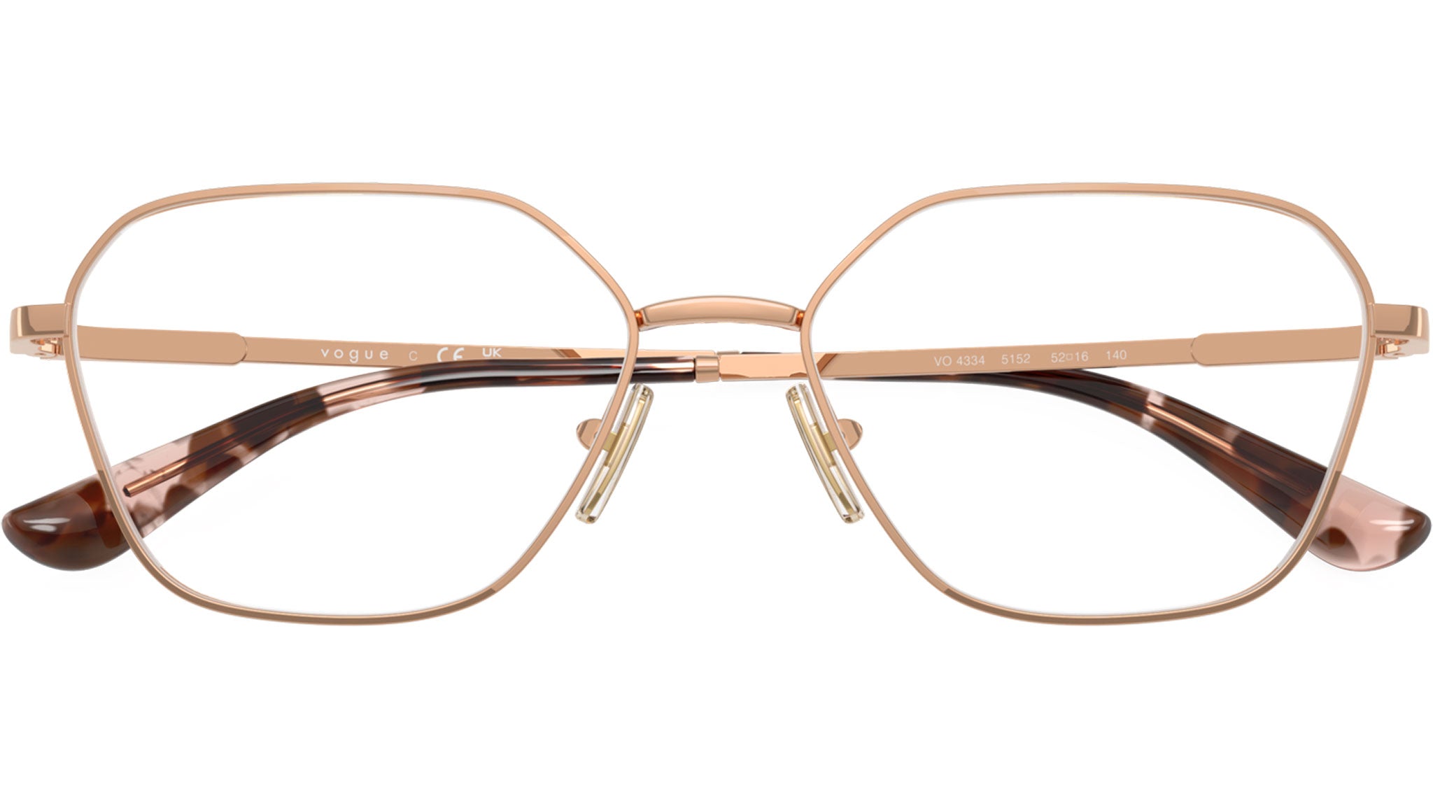 Montatura per occhiali da vista Vogue donna modello VO4334 5152 con montatura geometrica in metallo oro rosa e lenti demo base 4. Naselli regolabili. Linea: In Vogue. Codice Brand: 0VO4334. Codice colore: 5152. Rivenditore autorizzato online Vogue Eyewear. Ogni prodotto Vogue viene consegnato con astuccio originale e accessori ed è coperto da garanzia del produttore di 12 mesi.