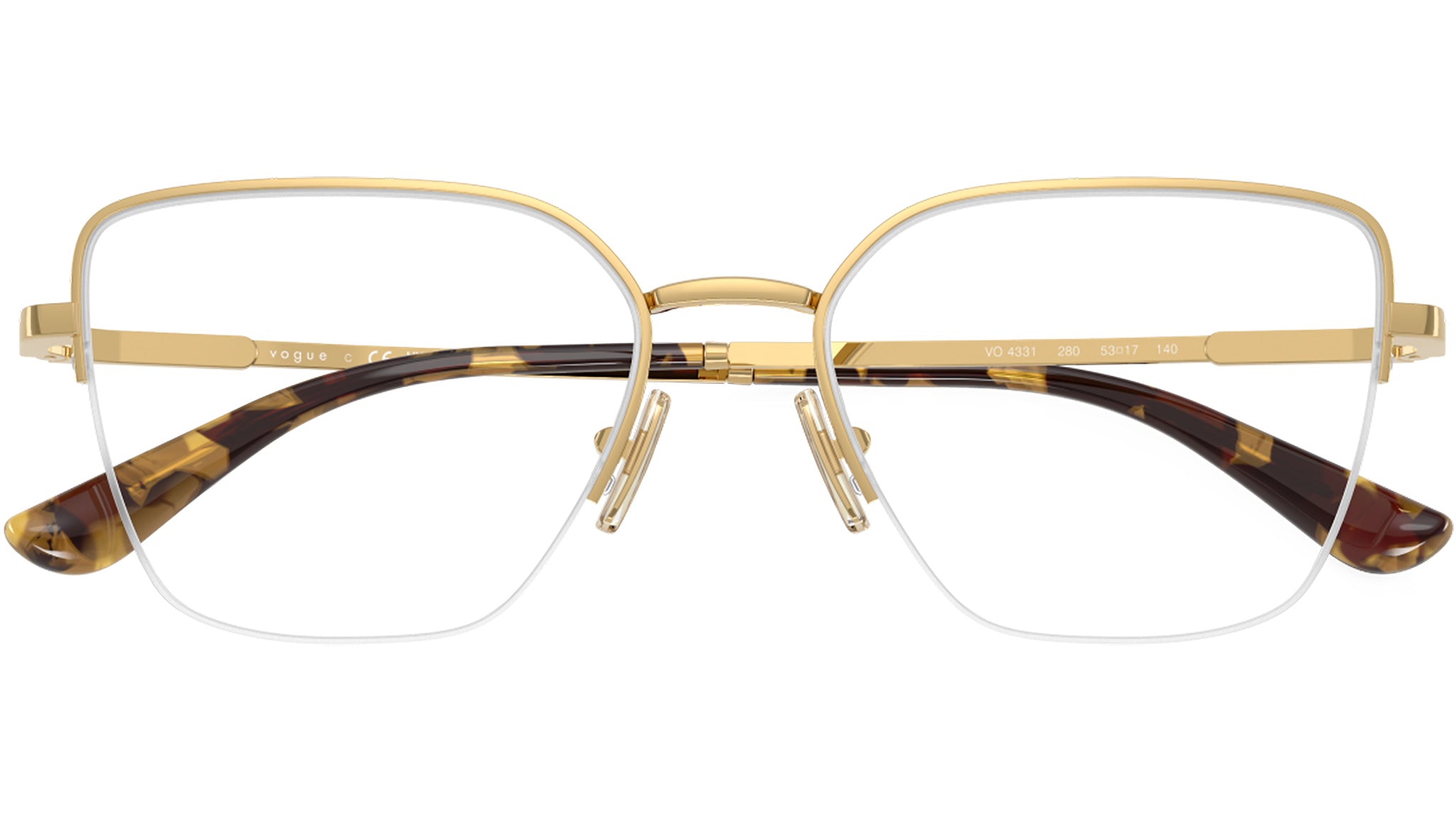 Montatura per occhiali da vista Vogue donna modello VO4331 280 con montatura a farfalla in metallo oro e lenti demo base 4. Naselli regolabili. Linea: In Vogue. Codice Brand: 0VO4331. Codice colore: 280. Rivenditore autorizzato online Vogue Eyewear. Ogni prodotto Vogue viene consegnato con astuccio originale e accessori ed è coperto da garanzia del produttore di 12 mesi.