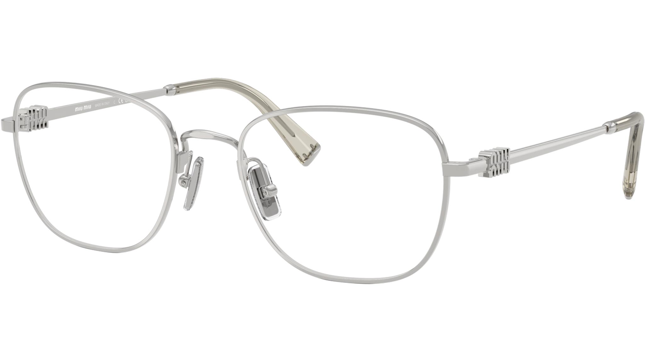 Occhiali da vista Miu Miu MU 50WV 1BC1O1 donna con montatura quadrata in metallo argento e lenti demo. Naselli regolabili. Linea: Miu Regard. Codice modello: 0MU 50WV. Codice colore: 1BC1O1. Made in Italy. Rivenditore autorizzato Miu Miu online. Gli occhiali vengono consegnati con custodia e accessori originali e sono coperti dalla garanzia ufficiale di 12 mesi del produttore.