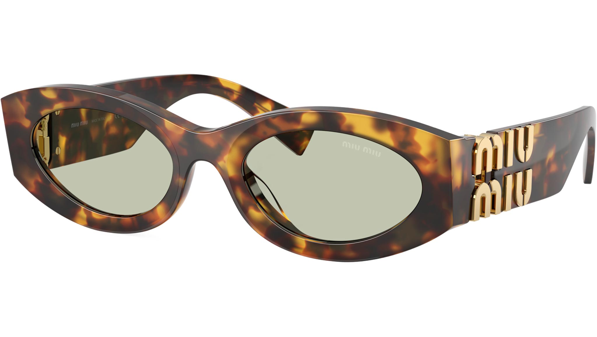 Occhiali da sole Miu Miu MU 11WS 14L50O donna con montatura ovale in acetato avana miele e lenti in bio poliammide color verde chiaro. Fit universale. Linea: Special Project. Codice modello: 0MU 11WS. Codice colore: 14L50O. Made in Italy. Rivenditore autorizzato Miu Miu online. Gli occhiali vengono consegnati con custodia e accessori originali e sono coperti dalla garanzia ufficiale di 12 mesi del produttore.