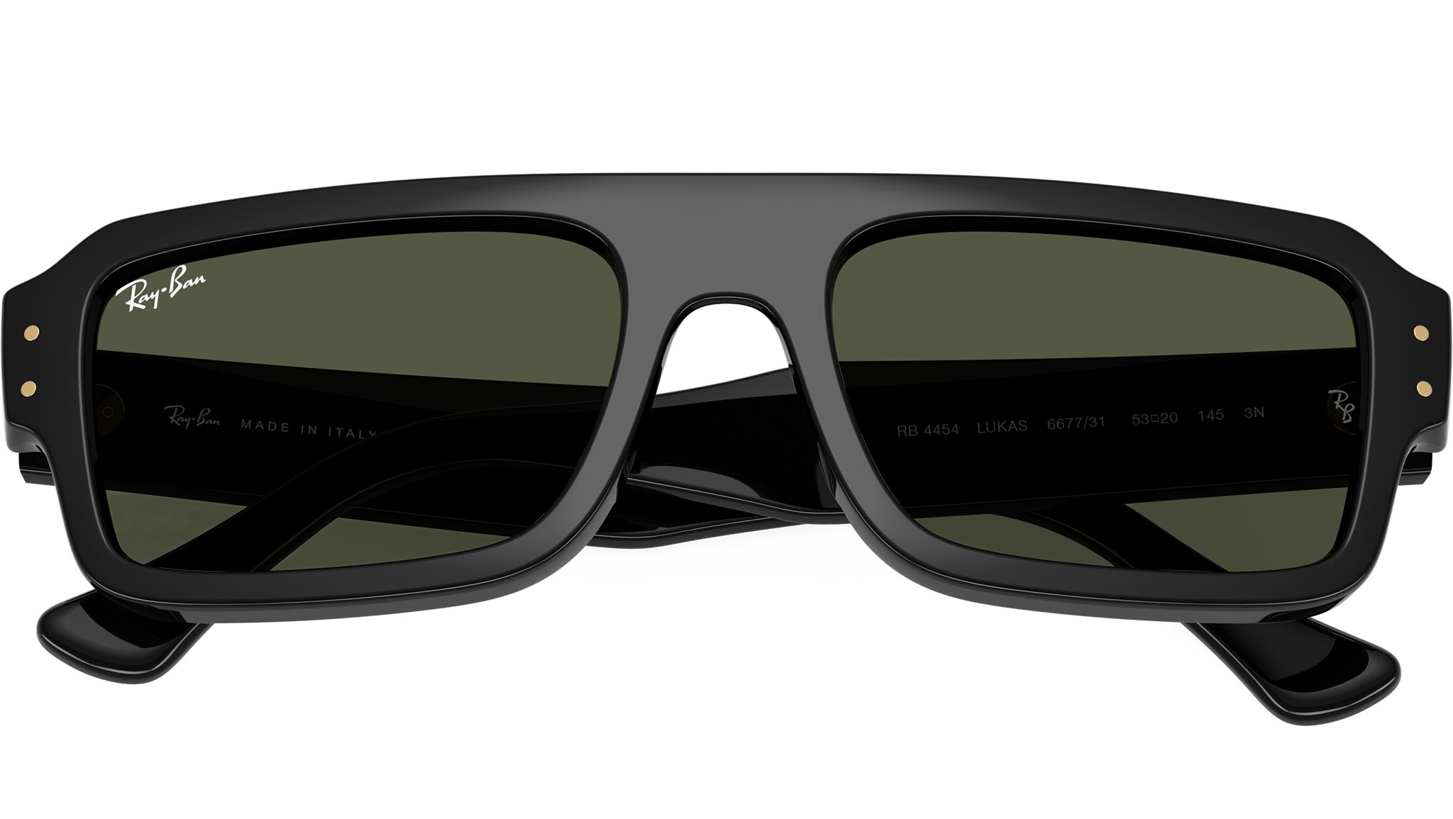 Occhiali da sole Ray-Ban Lukas RB4454 667731 unisex con montatura rettangolare in iniettato nero e lenti in cristallo color verde. Vestibilità a ponte alto. Linea: Evolution. Codice modello: 0RB4454. Codice colore: 667731. Rivenditore autorizzato Ray-Ban online. Gli occhiali vengono consegnati con custodia e accessori originali e sono coperti dalla garanzia ufficiale di 12 mesi del produttore.