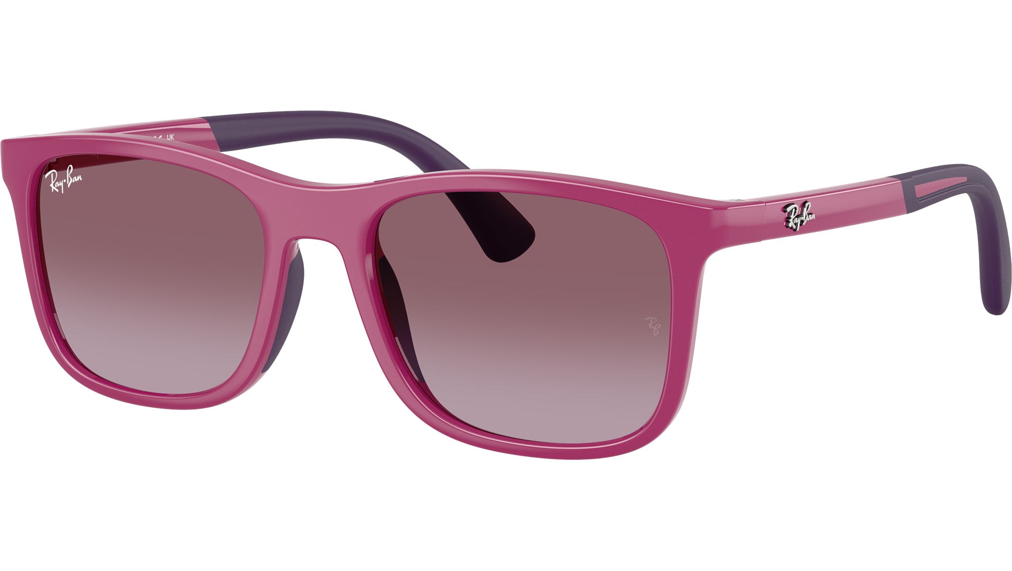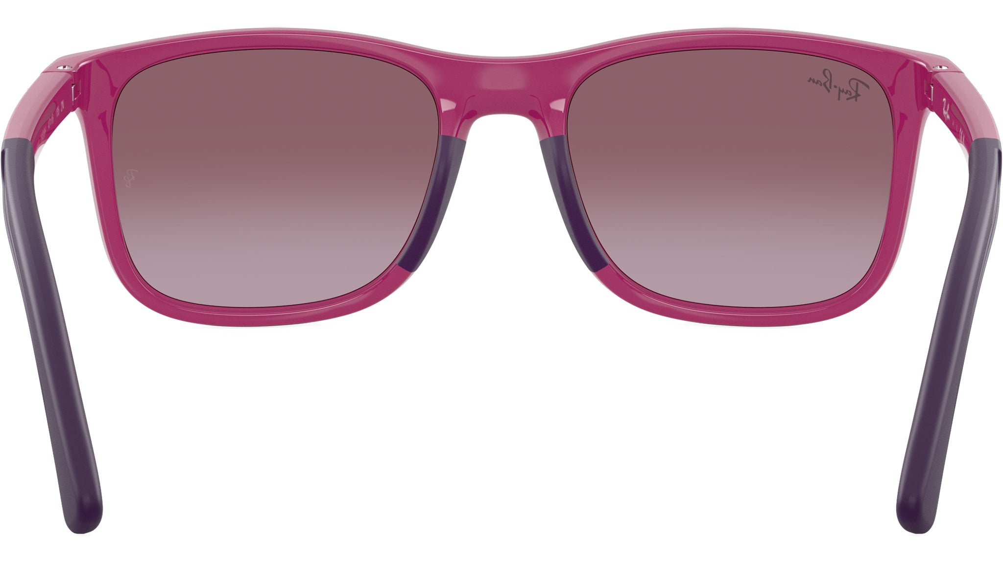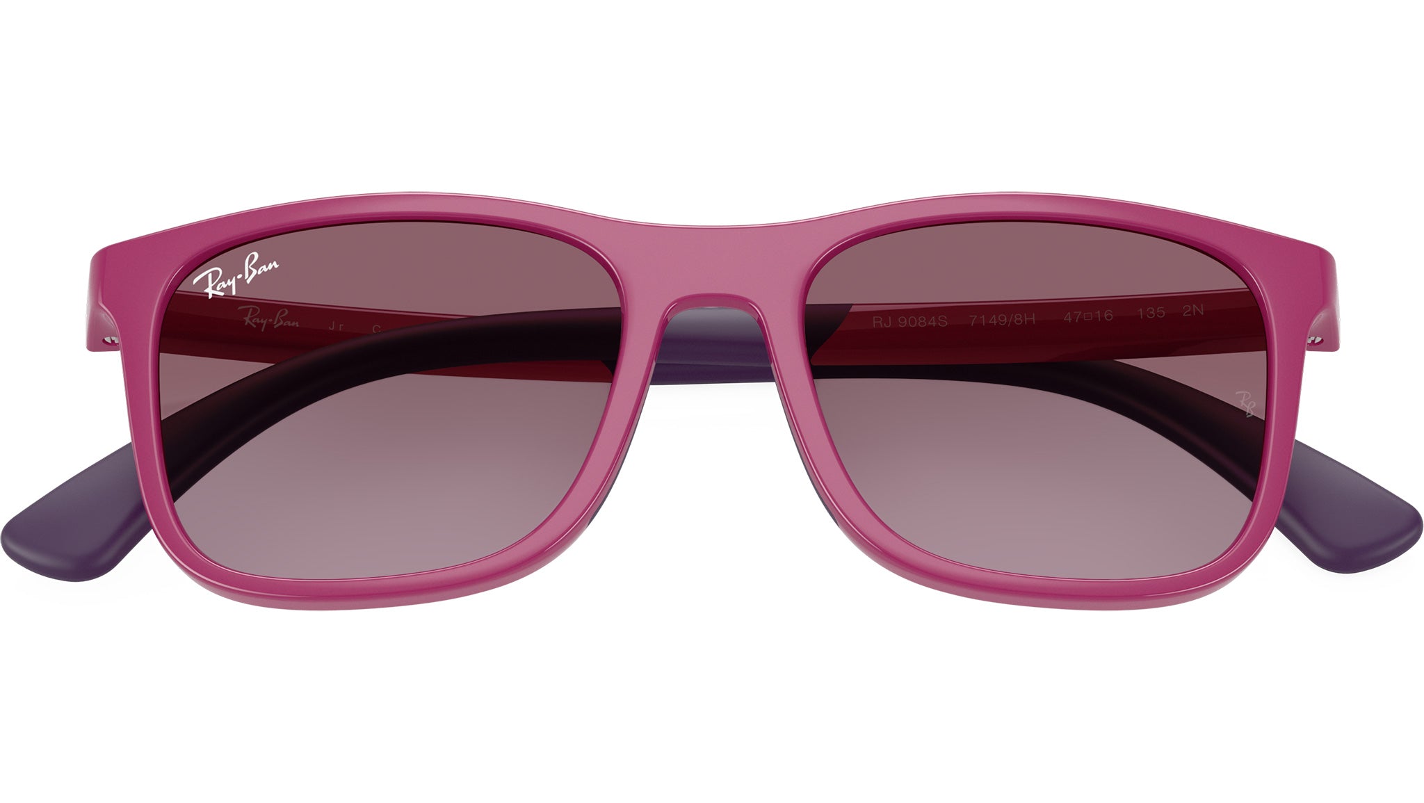Occhiali da sole Ray-Ban Junior RJ9084S 71498H unisex con montatura squadrata in iniettato fucsia su gomma viola e lenti in bio poliammide color sfumato viola. Vestibilità a ponte alto. Linea: Kids Innovation. Codice modello: 0RJ9084S. Codice colore: 71498H. Rivenditore autorizzato Ray-Ban online. Gli occhiali vengono consegnati con custodia e accessori originali e sono coperti dalla garanzia ufficiale di 12 mesi del produttore.