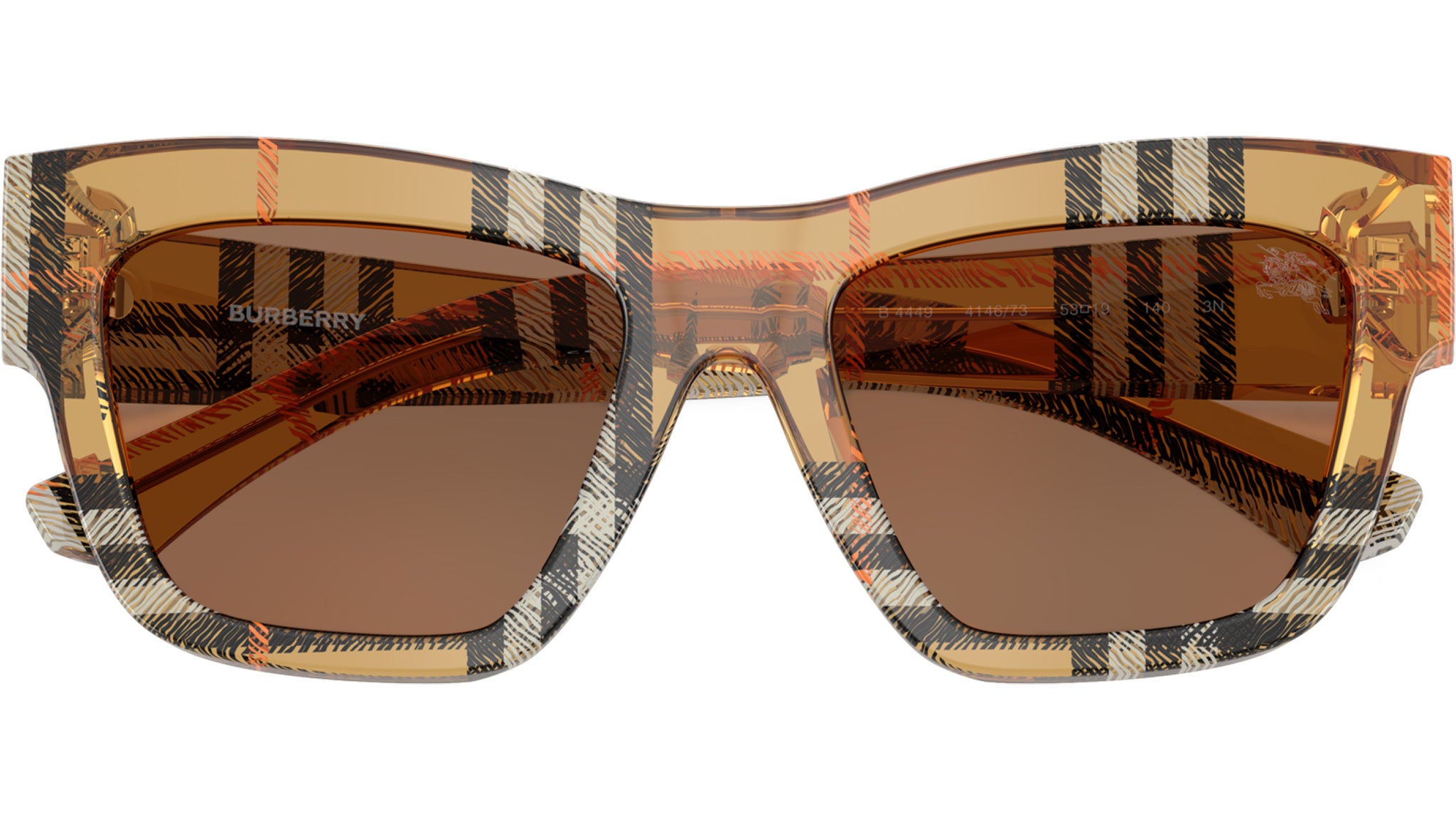 Occhiali da sole Burberry donna modello BE4449 414673 con montatura full rim in acetato sabbia a scacchi e lenti in bio poliammide marrone scuro. Vestibilità a ponte alto. Fitting consigliato: M. Linea: Shield Facet. Codice modello: 0BE4449. Codice colore: 414673. Rivenditore autorizzato online Burberry. Gli occhiali includono la custodia e gli accessori originali e sono coperti da una garanzia globale di 12 mesi.
