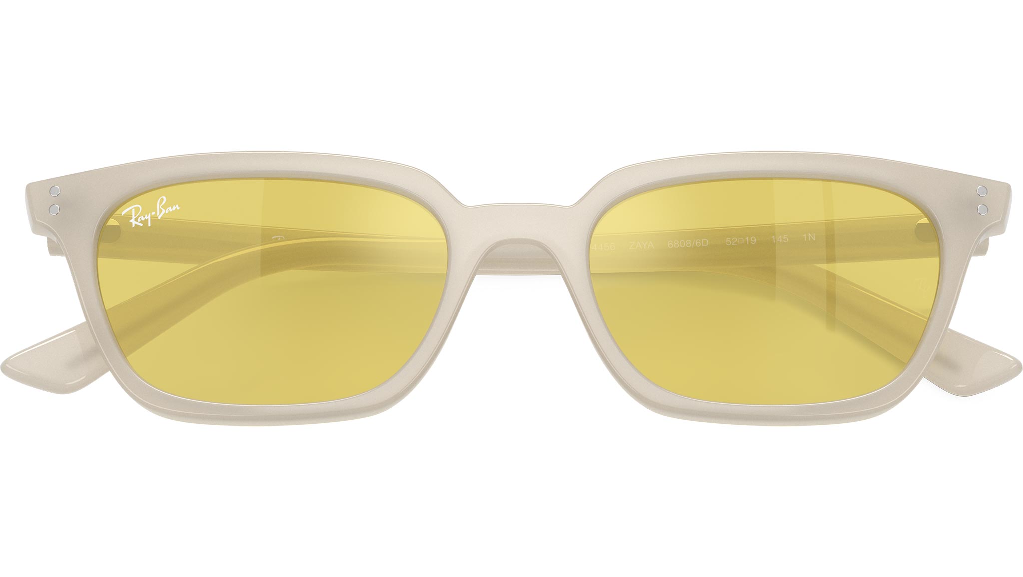 Occhiali da sole Ray-Ban Zaya RB4456 68086D unisex con montatura d-frame in iniettato bianco caldo e lenti in bio poliammide color giallo flash a specchio oro. Naselli regolabili. Linea: Nowness. Codice modello: 0RB4456. Codice colore: 68086D. Rivenditore autorizzato Ray-Ban online. Gli occhiali vengono consegnati con custodia e accessori originali e sono coperti dalla garanzia ufficiale di 12 mesi del produttore.