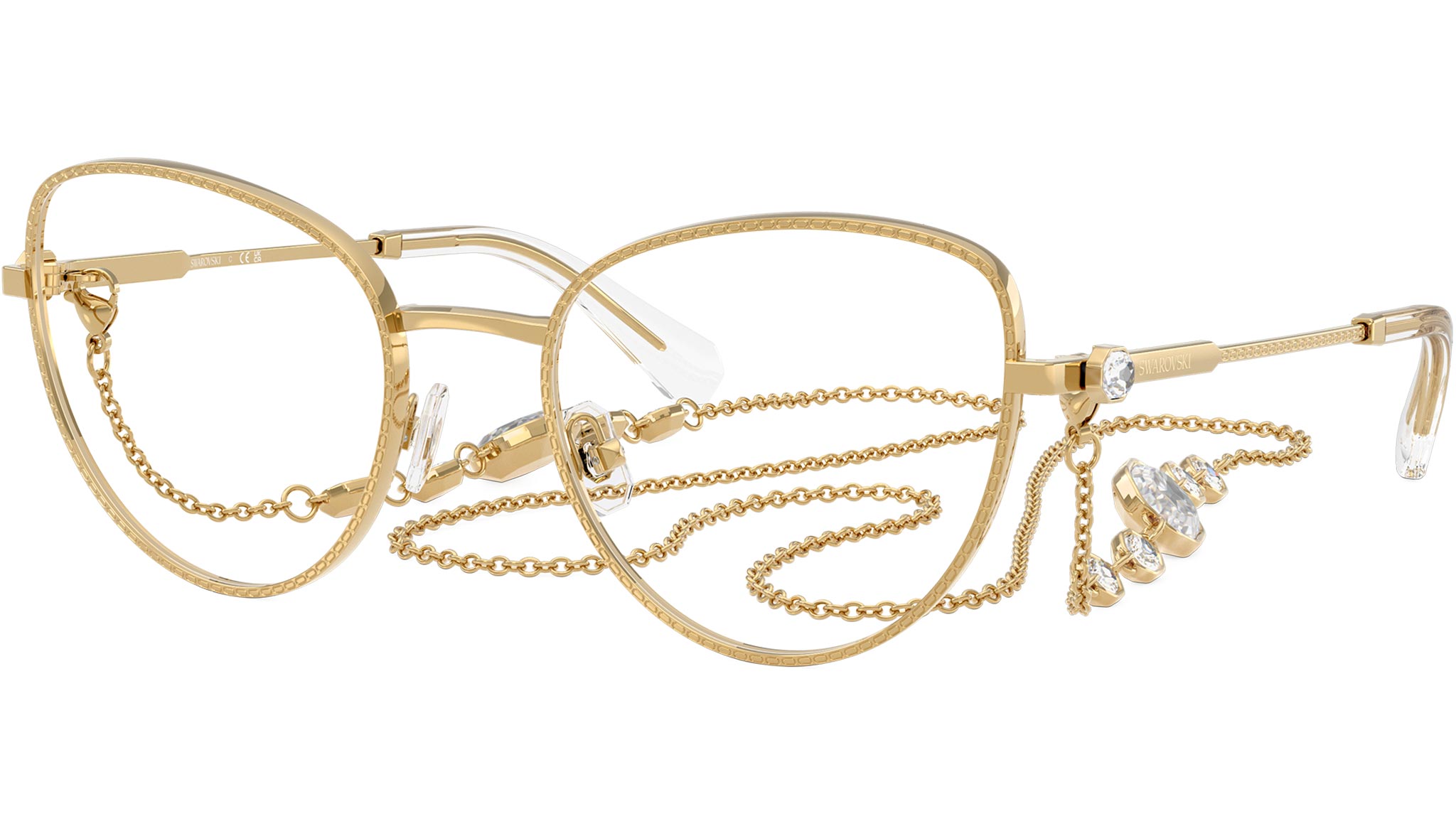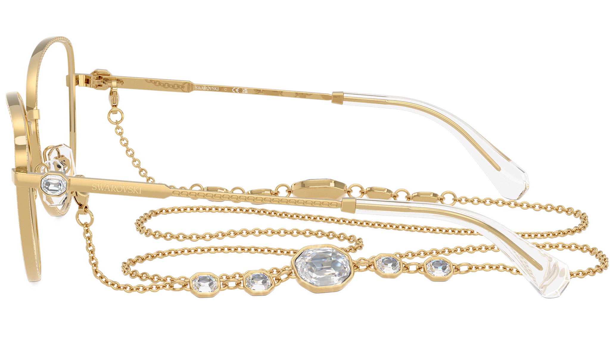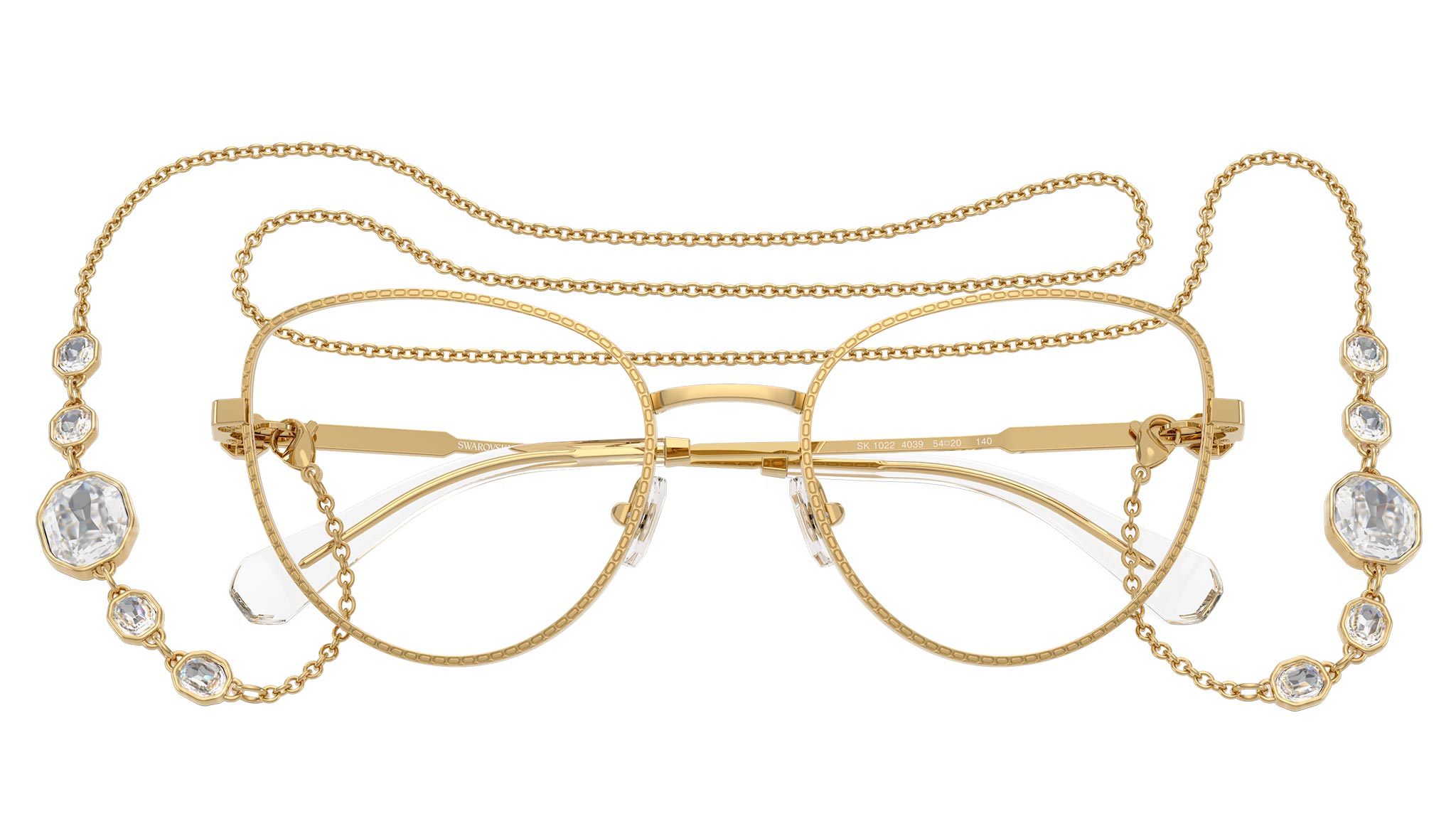 Occhiali da vista Swarovski SK1022 4039 donna, con montatura cat eye in metallo color oro e lenti demo. Naselli regolabili. Linea: Science of Facets. Codice modello: SK1022. Codice colore: 4039. Rivenditore autorizzato Swarovski Eyewear online. Ogni prodotto Swarovski viene consegnato con astuccio originale e accessori ed è coperto da garanzia del produttore di 12 mesi.