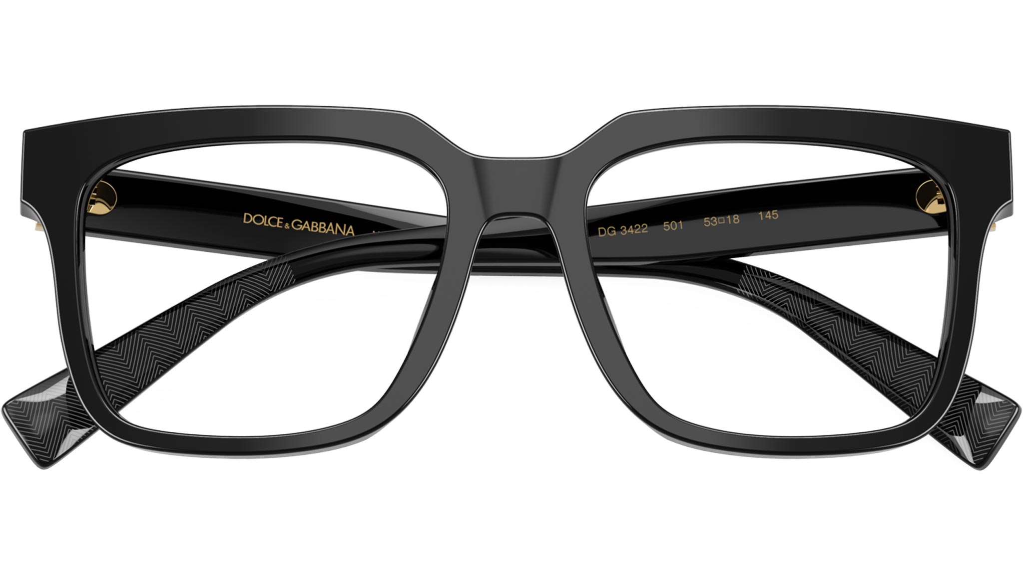 Occhiali da vista Dolce & Gabbana DG 3422 501 uomo con montatura squadrata in acetato nero e lenti demo. Fit universale. Linea: Dna. Codice modello: 0DG3422. Codice colore: 501. Made in Italy. Rivenditore autorizzato Dolce & Gabbana online. Gli occhiali vengono consegnati con custodia e accessori originali e sono coperti dalla garanzia ufficiale di 12 mesi del produttore.
