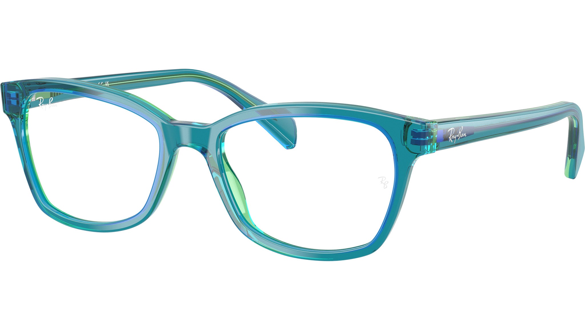 Occhiali da vista Ray-Ban Junior RY1591 3996 donna con montatura squadrata in acetato blu e verde trasparenti e lenti demo. Vestibilità a ponte alto. Linea: Kids Icons. Codice modello: 0RY1591. Codice colore: 3996. Rivenditore autorizzato Ray-Ban online. Gli occhiali vengono consegnati con custodia e accessori originali e sono coperti dalla garanzia ufficiale di 12 mesi del produttore.