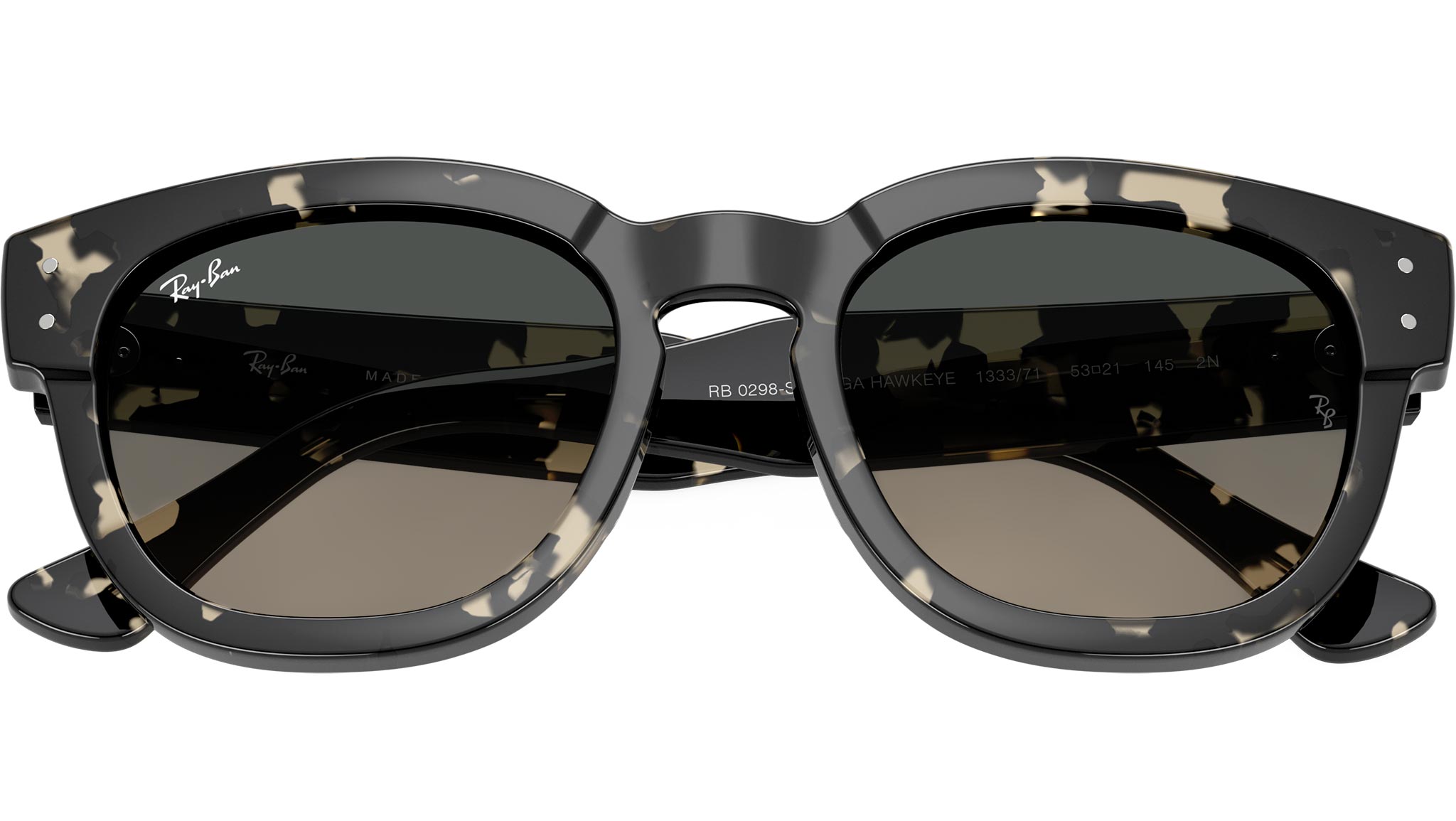 Occhiali da sole Ray-Ban Mega Hawkeye RB0298S 133371 unisex con montatura squadrata in propionato grigio avana e lenti in cristallo color grigio sfumato. Vestibilità a ponte alto. Linea: Evolution. Codice modello: 0RB0298S. Codice colore: 133371. Rivenditore autorizzato Ray-Ban online. Gli occhiali vengono consegnati con custodia e accessori originali e sono coperti dalla garanzia ufficiale di 12 mesi del produttore.