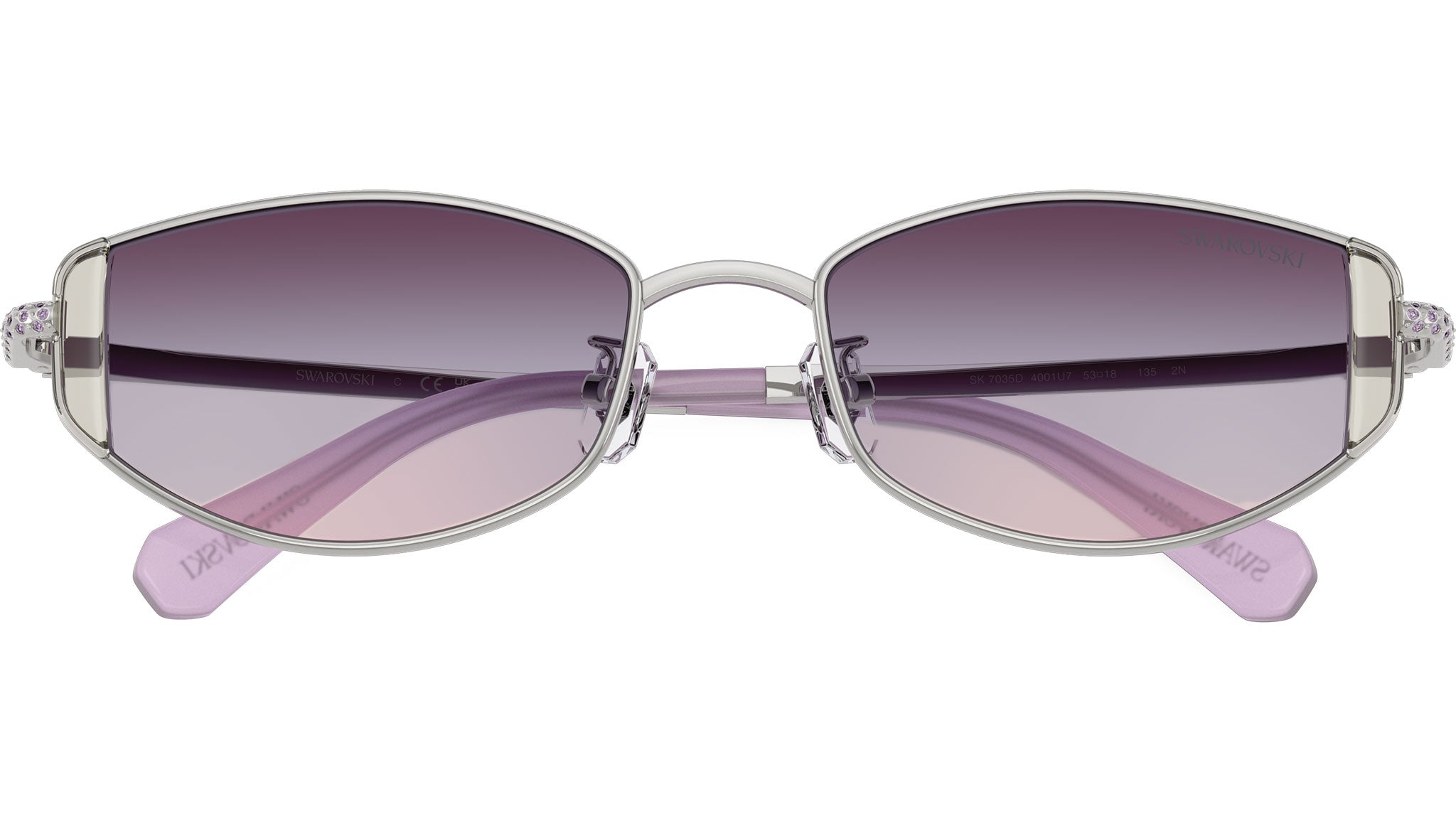Occhiali da sole Swarovski SK7035D 4001U7 donna, con montatura ovale in metallo color argento e lenti viola sfumato in poliammide. Vestibilità a ponte basso. Linea: Science of Facets. Codice modello: SK7035D. Codice colore: 4001U7. Rivenditore autorizzato Swarovski Eyewear online. Ogni prodotto Swarovski viene consegnato con astuccio originale e accessori ed è coperto da garanzia del produttore di 12 mesi.