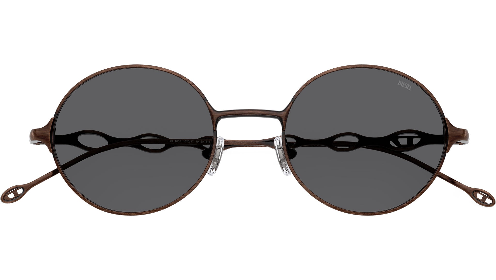 Occhiali da sole Diesel DL1008 102587 unisex con montatura rotonda in metallo giallo chiaro marrone spazzolato e lenti in bio poliammide color grigio. Naselli regolabili. Linea: Core. Codice modello: 0DL1008. Codice colore: 102587. Made in Italy. Rivenditore autorizzato Diesel online. Gli occhiali vengono consegnati con custodia e accessori originali e sono coperti dalla garanzia ufficiale di 12 mesi del produttore.