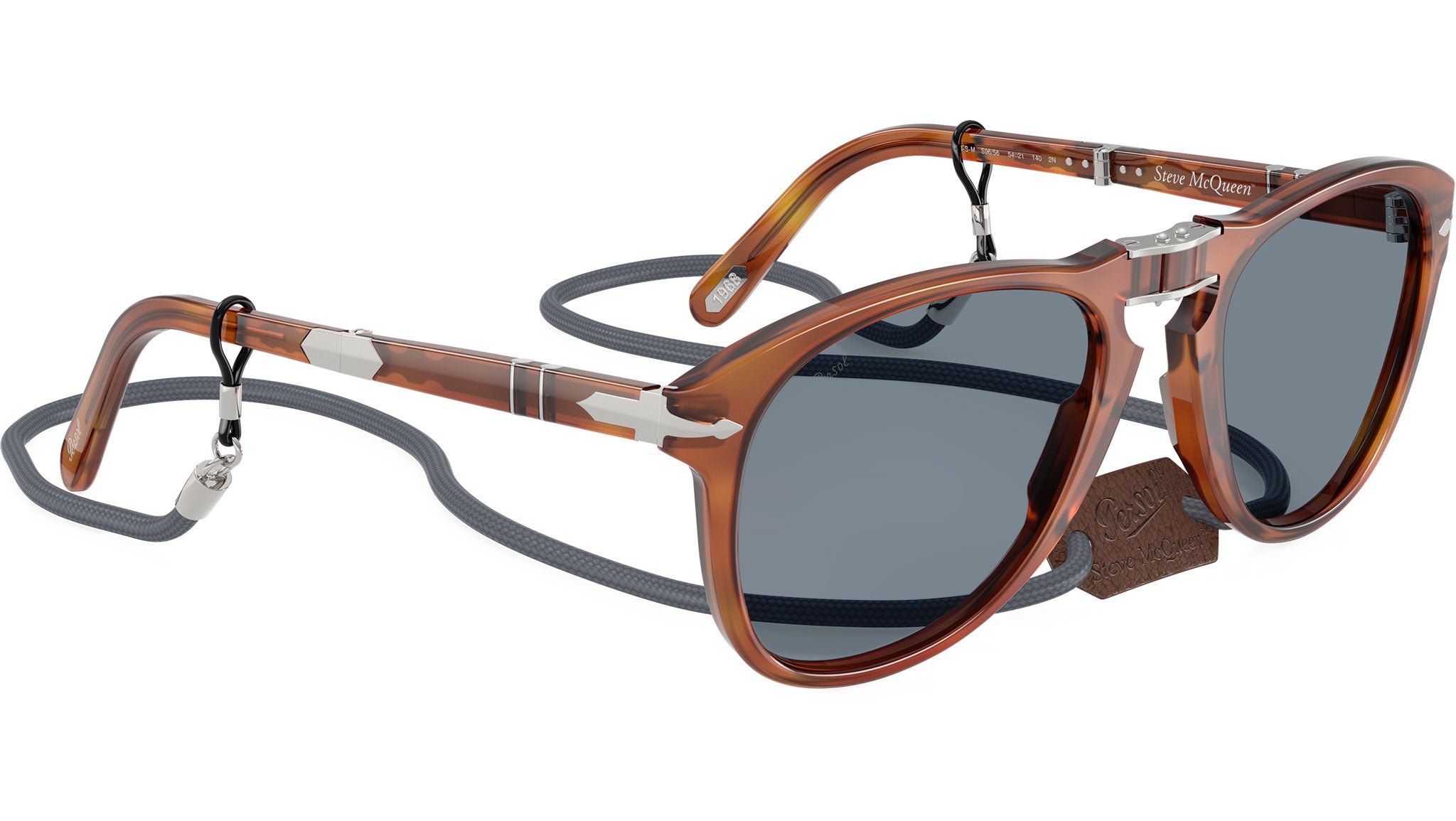 Gli occhiali da sole pieghevoli Persol Steve McQueen 714SM uniscono design senza tempo e innovazione, con un design ispirato direttamente dall’inconfondibile stile dell’attore. Realizzata in acetato color terra di siena, la silhouette aviator classica è valorizzata da un ponte nasale a chiave, dalle iconiche frecce Persol e dal sistema Meflecto, che assicura comfort e flessibilità. La montatura si piega con facilità per una maggiore praticità, mentre le lenti in cristallo azzurro chiaro offrono una visione nitida con un tocco rétro. Con misura 54-21, questa versione media garantisce una copertura equilibrata del viso, ideale per chi cerca eleganza funzionale e raffinata.