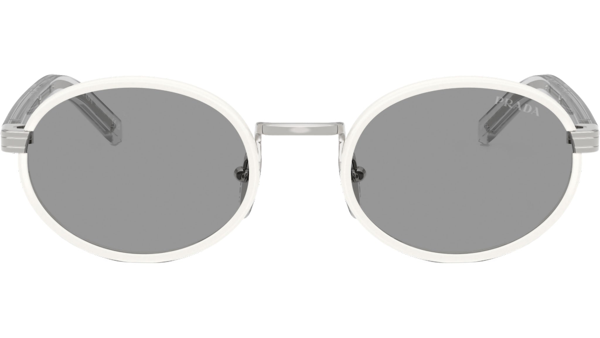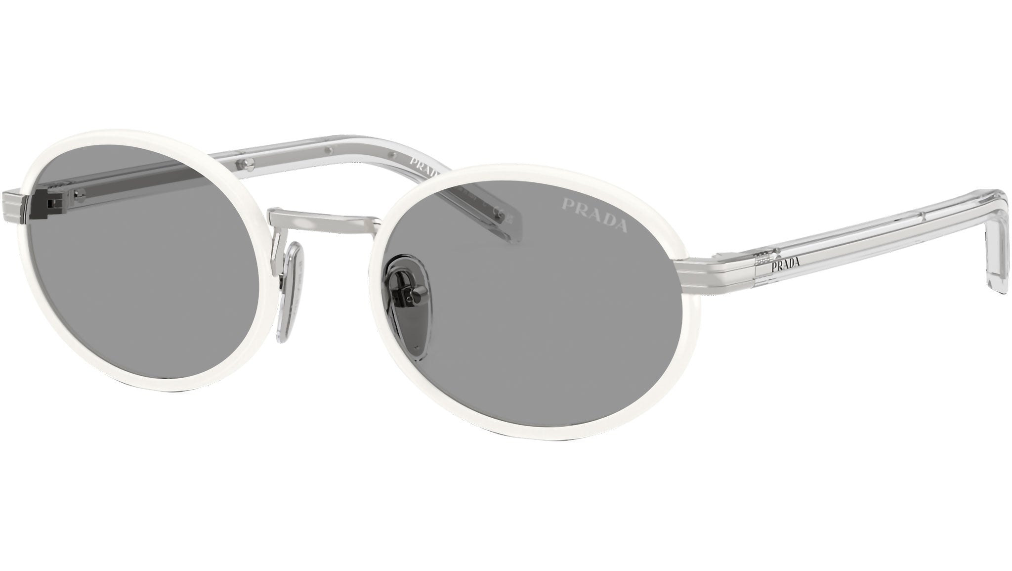 Occhiali da sole Prada PR B56S 23E50Q donna con montatura ovale in acciaio talco e lenti in bio poliammide color grigio. Naselli regolabili. Linea: Signature. Codice modello: PRB56S. Codice colore: 23E50Q. Made in Italy. Rivenditore autorizzato Prada online. Gli occhiali vengono consegnati con custodia e accessori originali e sono coperti dalla garanzia ufficiale di 12 mesi del produttore.