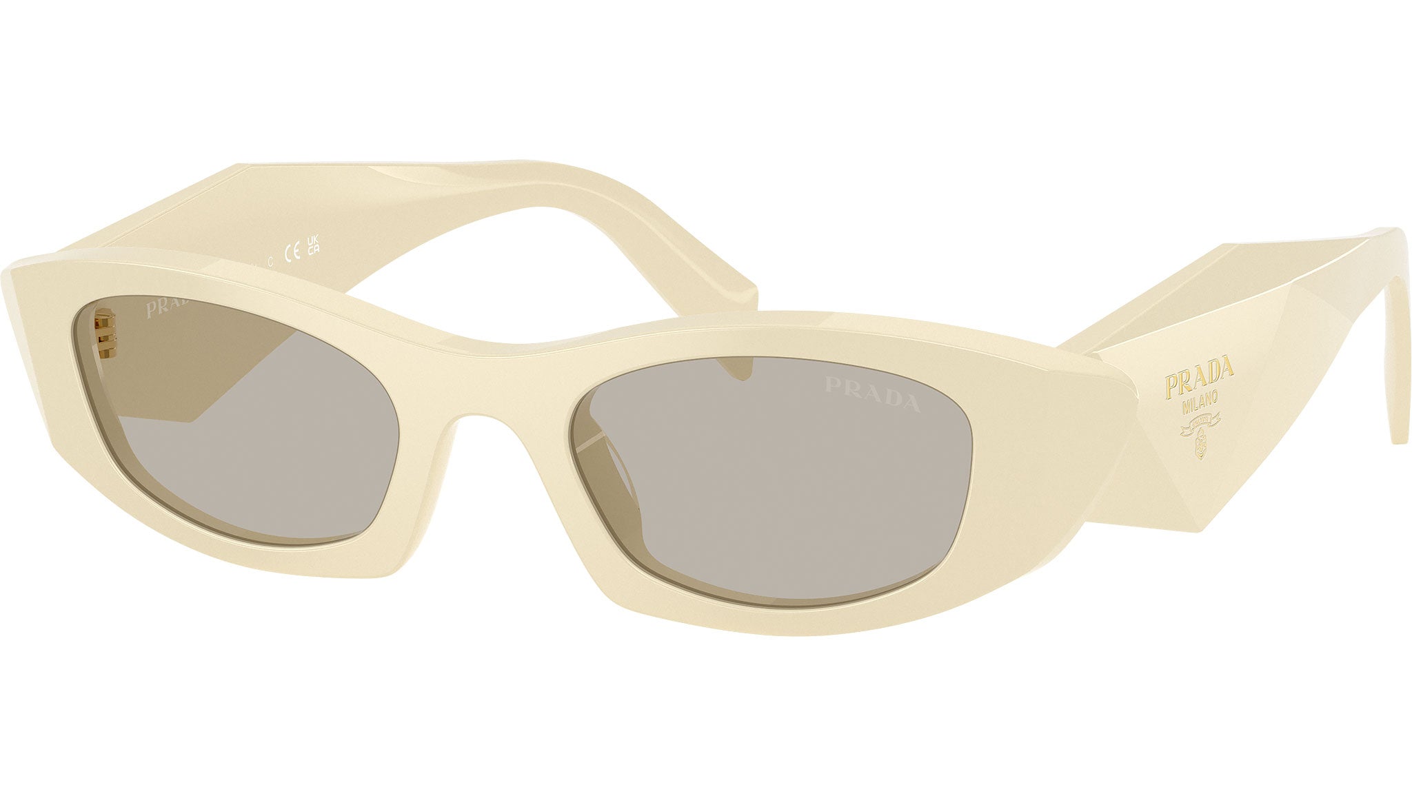 Occhiali da sole Prada PR B16S 21D5J2 donna con montatura ovale in acetato bianco latte e lenti in bio poliammide color marrone chiaro. Vestibilità a ponte alto. Linea: Design. Codice modello: PRB16S. Codice colore: 21D5J2. Made in Italy. Rivenditore autorizzato Prada online. Gli occhiali vengono consegnati con custodia e accessori originali e sono coperti dalla garanzia ufficiale di 12 mesi del produttore.