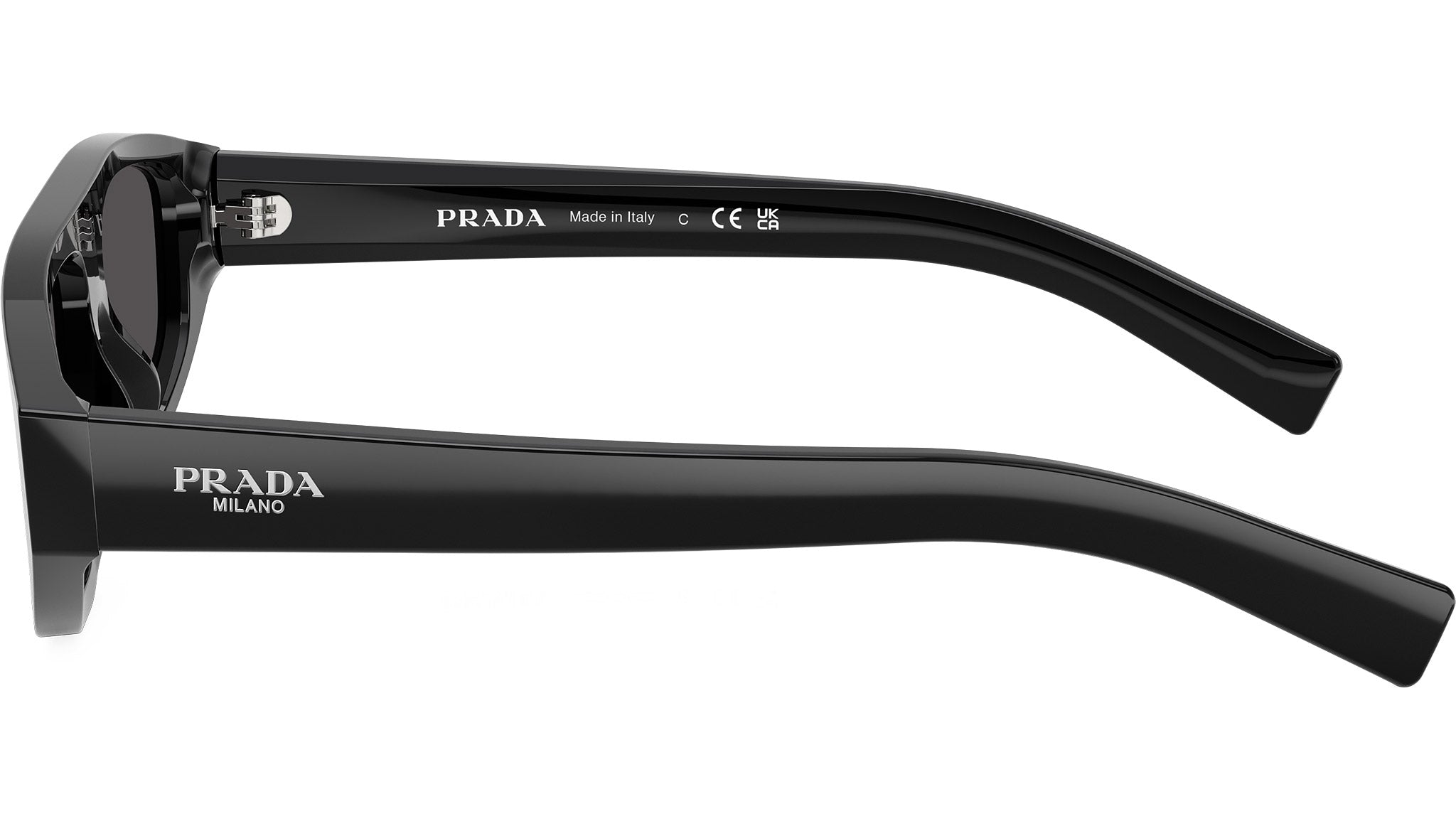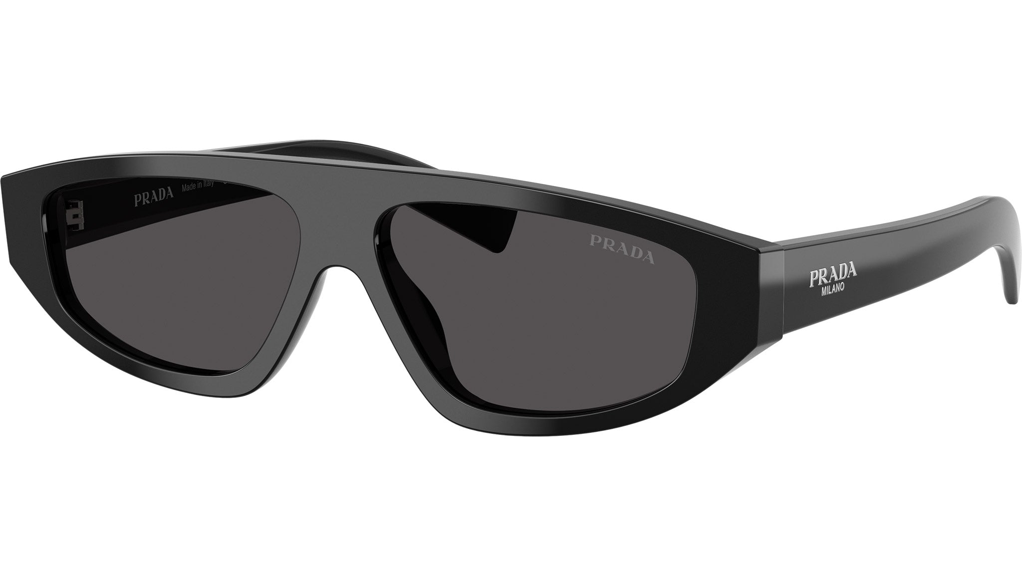 Occhiali da sole Prada PR C02S 16K08Z uomo con montatura geometrica in acetato nero e lenti in bio poliammide color grigio scuro. Vestibilità a ponte alto. Linea: Essential. Codice modello: PRC02S. Codice colore: 16K08Z. Made in Italy. Rivenditore autorizzato Prada online. Gli occhiali vengono consegnati con custodia e accessori originali e sono coperti dalla garanzia ufficiale di 12 mesi del produttore.