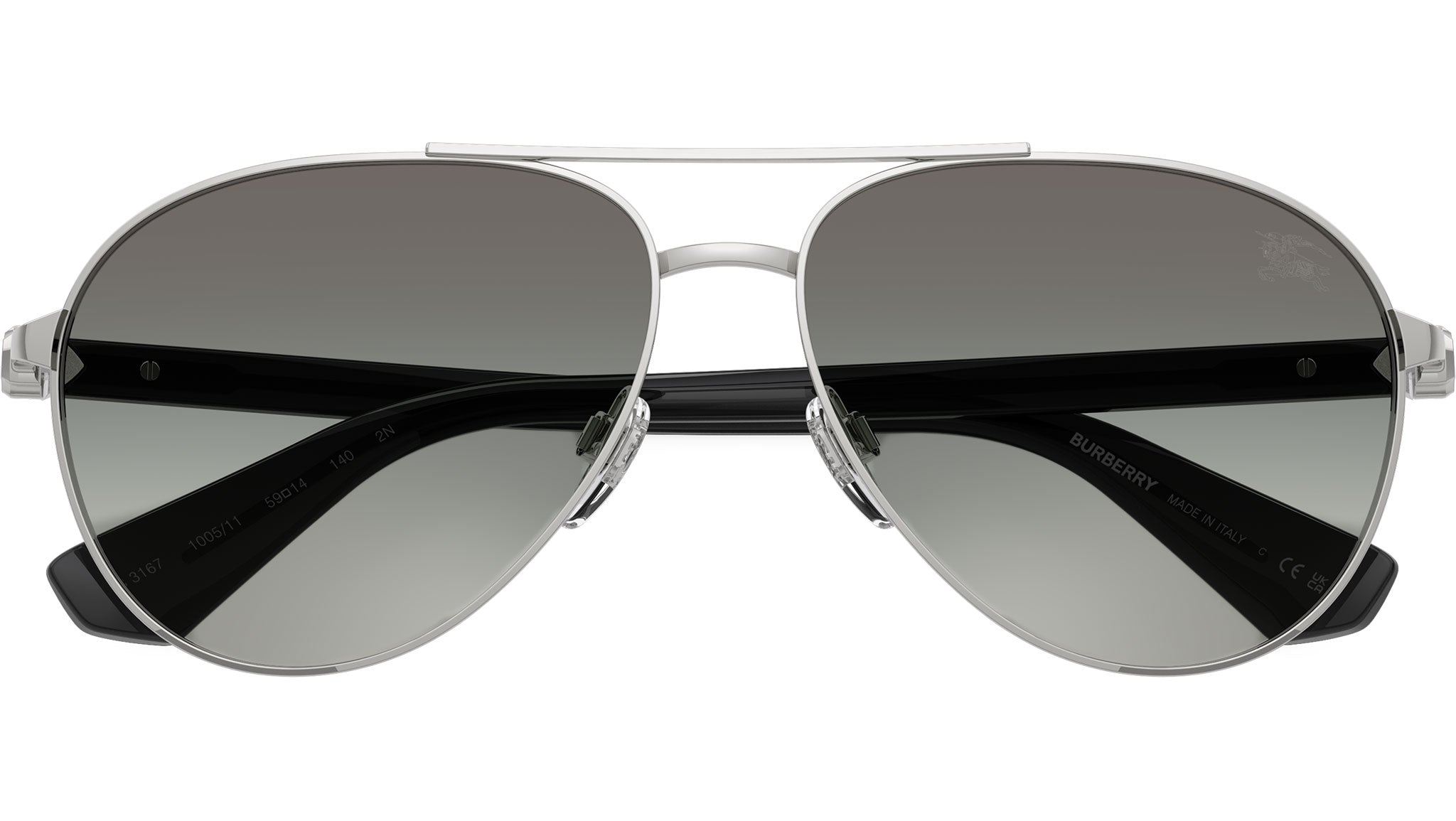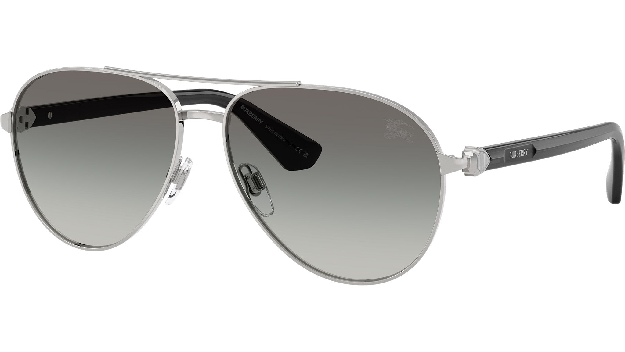 Occhiali da sole Burberry uomo modello BE3167 100511 con montatura full rim in metallo argento e lenti in bio poliammide grigio sfumato. Naselli regolabili. Fitting consigliato: XL. Linea: Metal Shield. Codice modello: 0BE3167. Codice colore: 100511. Rivenditore autorizzato online Burberry. Gli occhiali includono la custodia e gli accessori originali e sono coperti da una garanzia globale di 12 mesi.