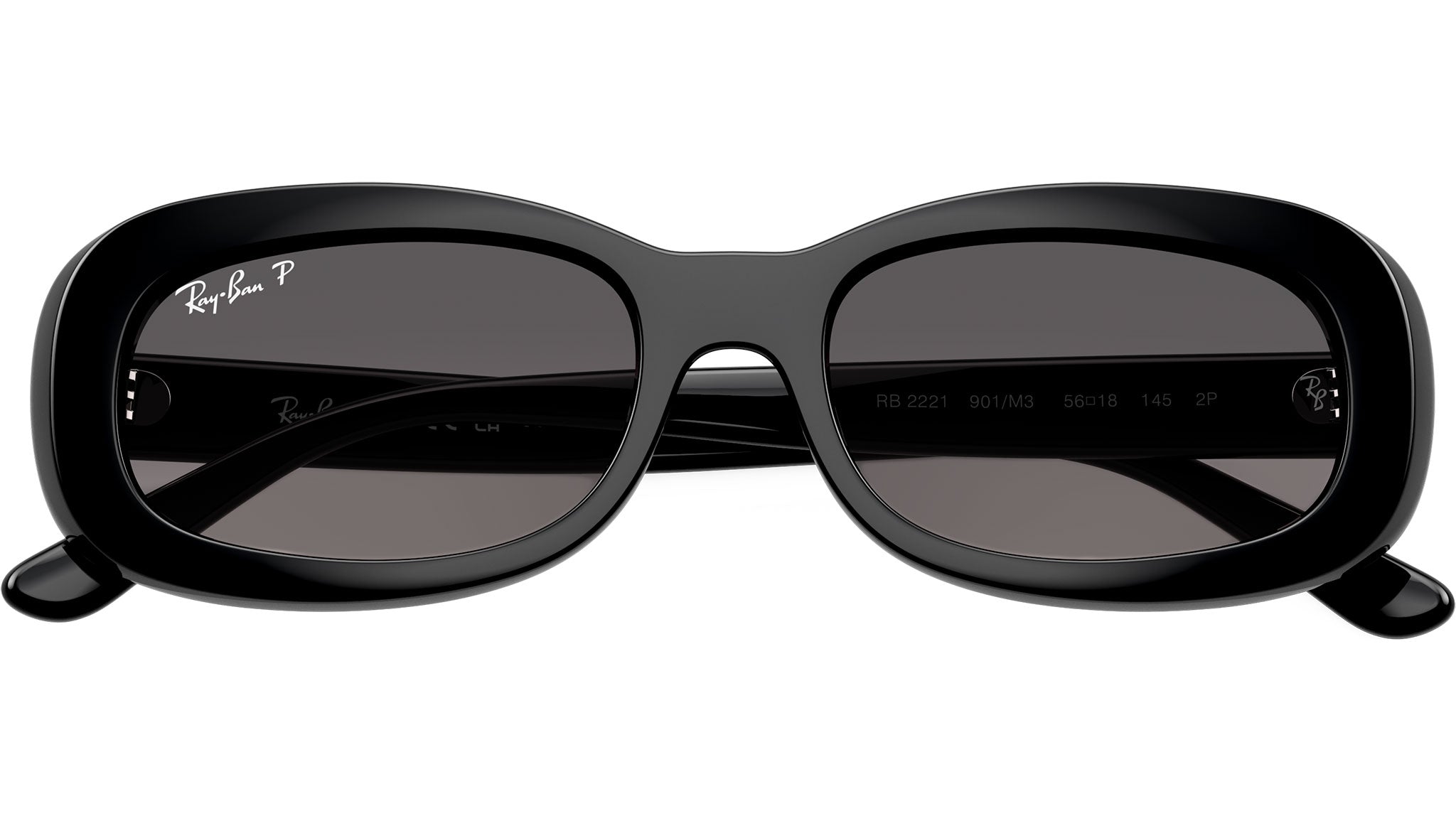 Occhiali da sole Ray-Ban RB2221 901/M3 donna con montatura ovale in propionato nero e lenti in cristallo color grigio sfumato polarizzato. Vestibilità a ponte alto. Linea: Evolution. Codice modello: 0RB2221. Codice colore: 901/M3. Rivenditore autorizzato Ray-Ban online. Gli occhiali vengono consegnati con custodia e accessori originali e sono coperti dalla garanzia ufficiale di 12 mesi del produttore.