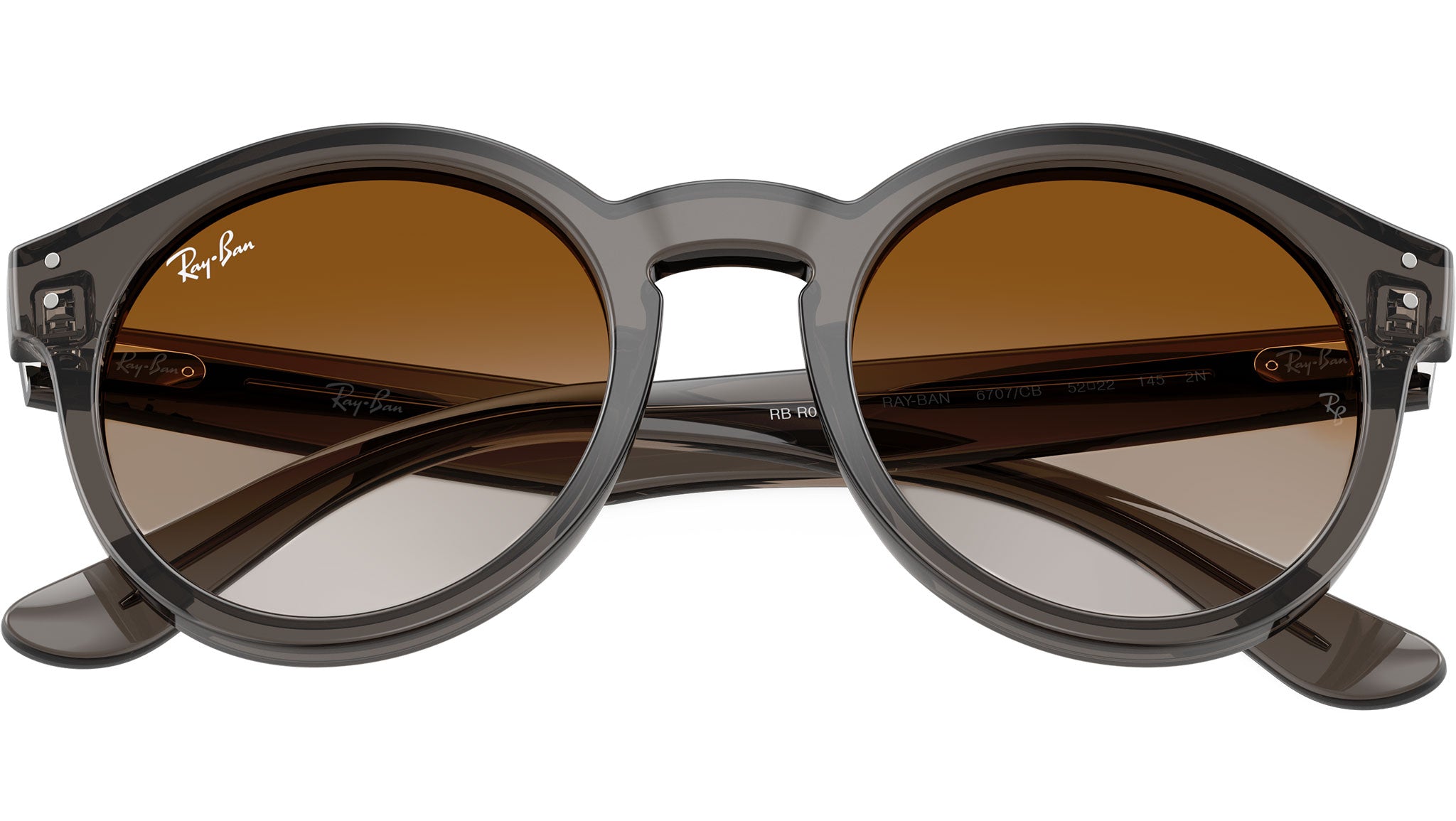 Occhiali da sole Ray-Ban RBR0505S 6707CB unisex con montatura pantos in iniettato grigio scuro trasparente e lenti in bio poliammide color marrone chiaro sfumato. Vestibilità a ponte alto. Linea: Essentials. Codice modello: 0RBR0505S. Codice colore: 6707CB. Rivenditore autorizzato Ray-Ban online. Gli occhiali vengono consegnati con custodia e accessori originali e sono coperti dalla garanzia ufficiale di 12 mesi del produttore.