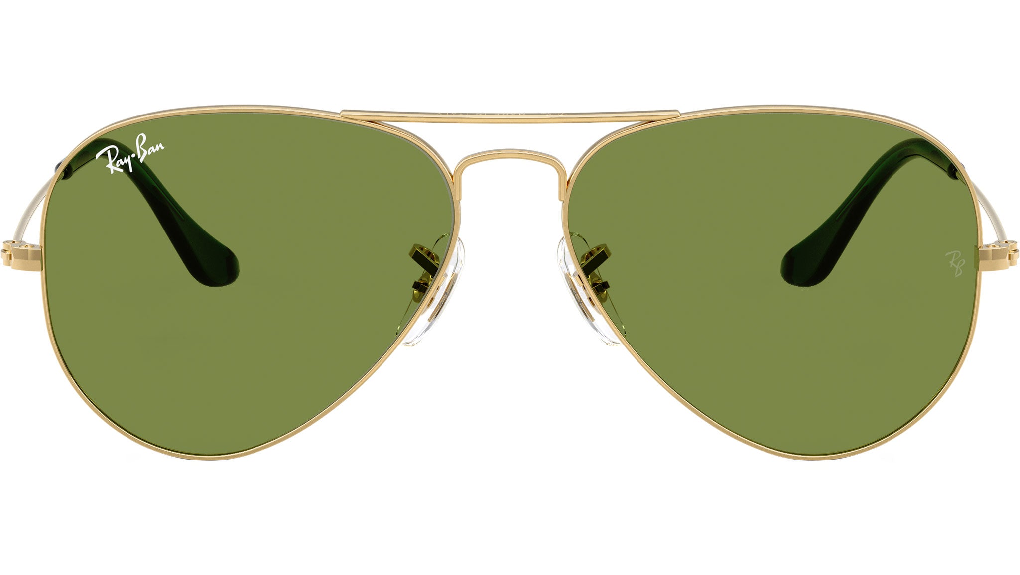 Occhiali da sole Ray-Ban Aviator RB3025 001/4E unisex con montatura aviatore in metallo arista oro e lenti in cristallo color verde. Naselli regolabili. Linea: Legacy. Codice modello: 0RB3025. Codice colore: 001/4E. Rivenditore autorizzato Ray-Ban online. Gli occhiali vengono consegnati con custodia e accessori originali e sono coperti dalla garanzia ufficiale di 12 mesi del produttore.