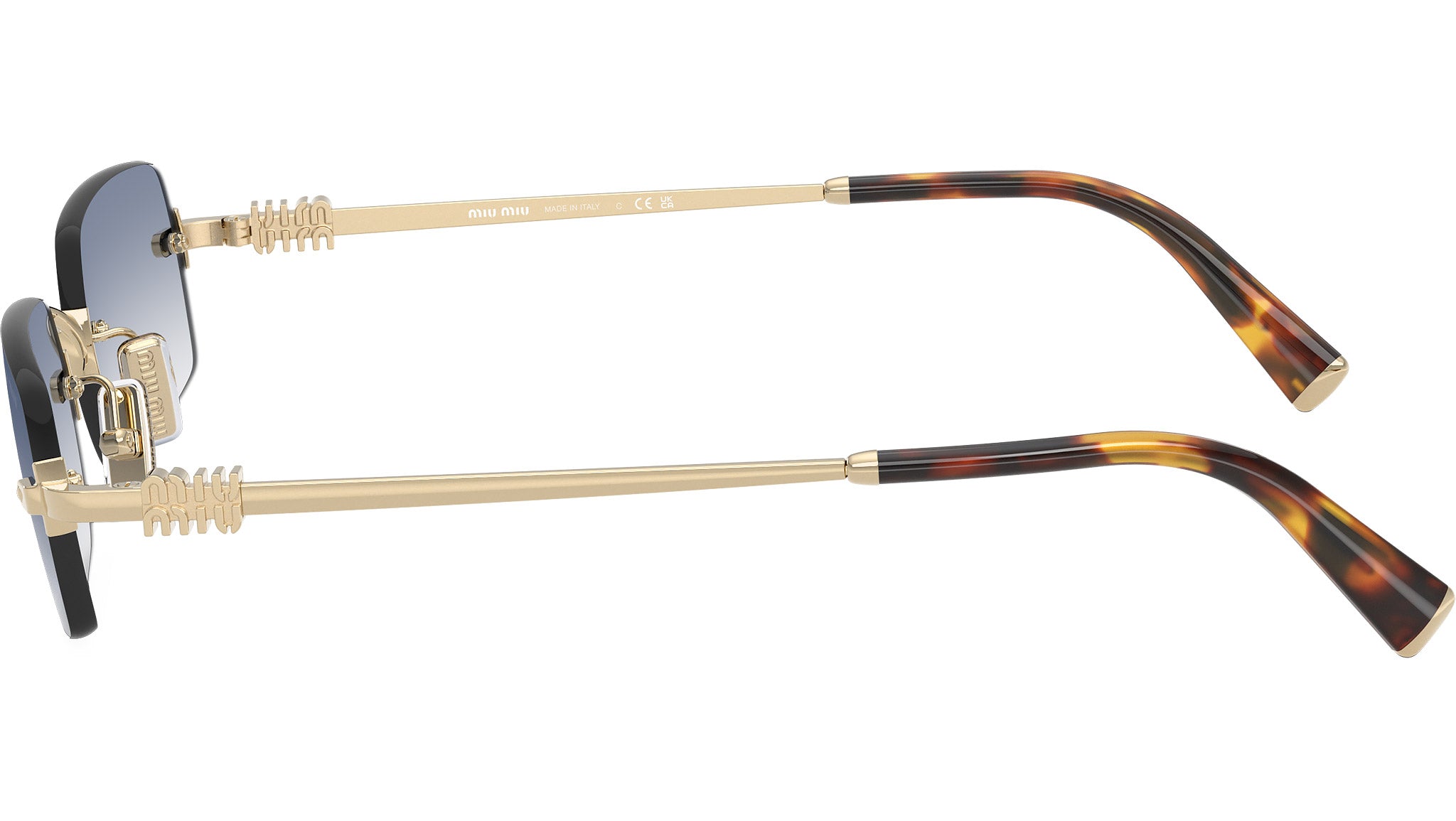 Occhiali da sole Miu Miu MU B50S ZVN80O donna con montatura rettangolare in metallo oro pallido e lenti in bio poliammide color trasparente sfumato blu chiaro. Naselli regolabili. Linea: Main Collection. Codice modello: 0MU B50S. Codice colore: ZVN80O. Made in Italy. Rivenditore autorizzato Miu Miu online. Gli occhiali vengono consegnati con custodia e accessori originali e sono coperti dalla garanzia ufficiale di 12 mesi del produttore.
