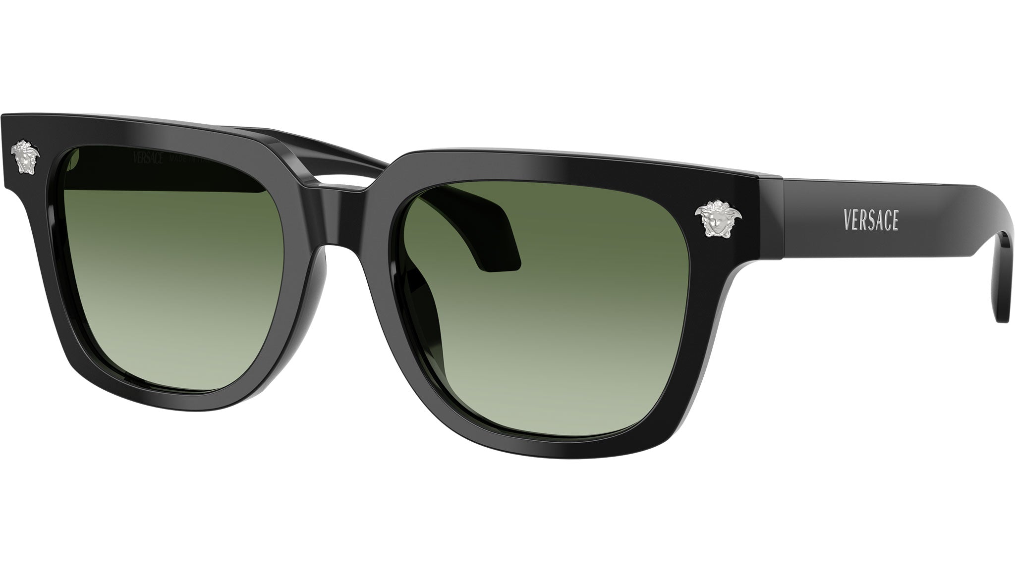 Occhiali da sole Versace uomo modello VE4510U GB1/8E con montatura squadrata in acetato nero e lenti base 2 in bio poliammide sfumato verde. Fit universale. Linea: Daily Heritage. Codice Brand: 0VE4510U. Codice colore: GB1/8E. Rivenditore autorizzato online Versace Eyewear. Ogni prodotto Versace viene consegnato con astuccio originale e accessori ed è coperto da garanzia del produttore di 12 mesi.