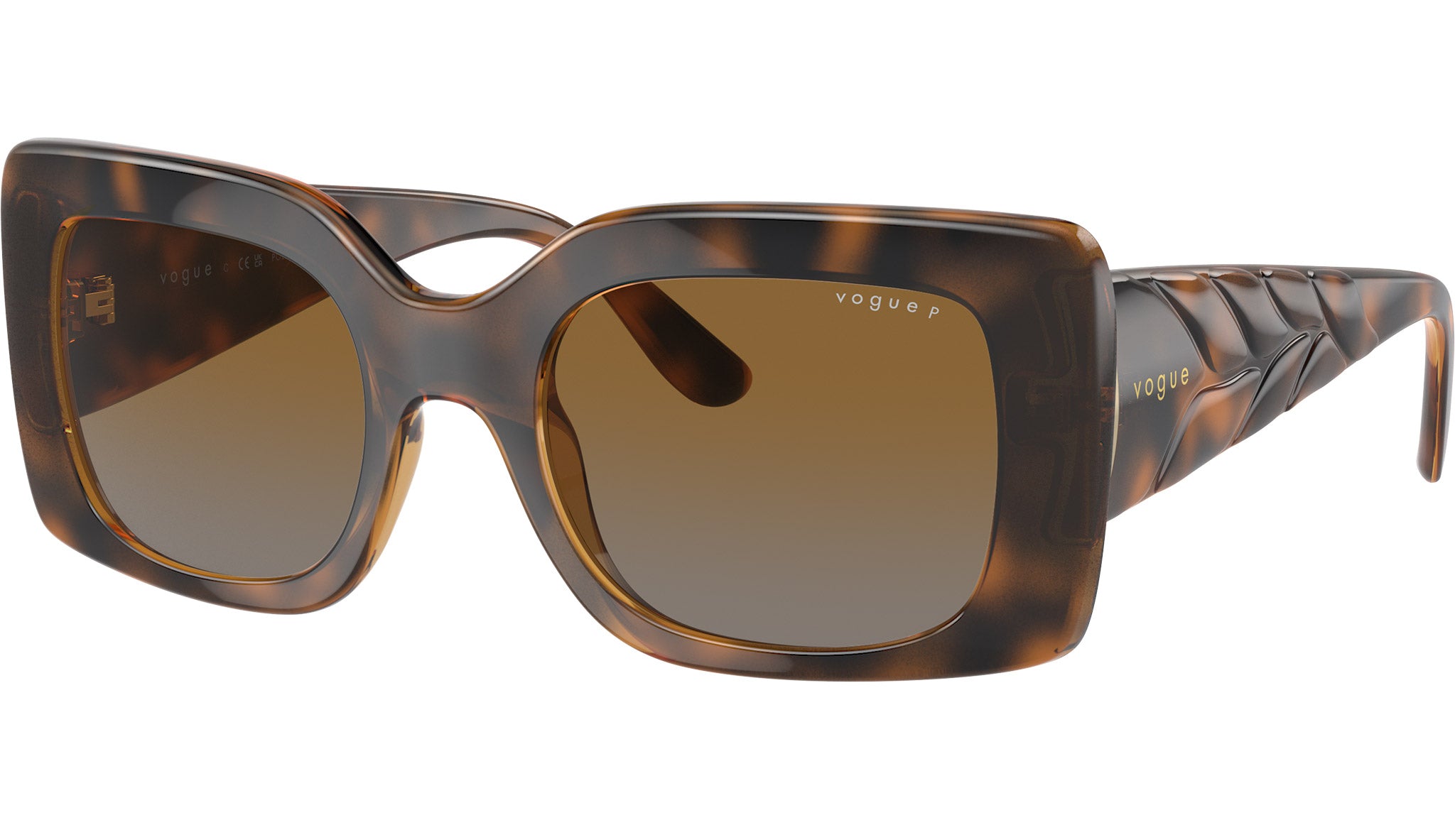 Occhiali da sole Vogue donna modello VO5481S 2386T5 con montatura rettangolare in iniettato avana e lenti base 6 in policarbonato grigio sfumato marrone polarizzato. Vestibilità a ponte alto. Linea: In Vogue. Codice Brand: 0VO5481S. Codice colore: 2386T5. Rivenditore autorizzato online Vogue Eyewear. Ogni prodotto Vogue viene consegnato con astuccio originale e accessori ed è coperto da garanzia del produttore di 12 mesi.